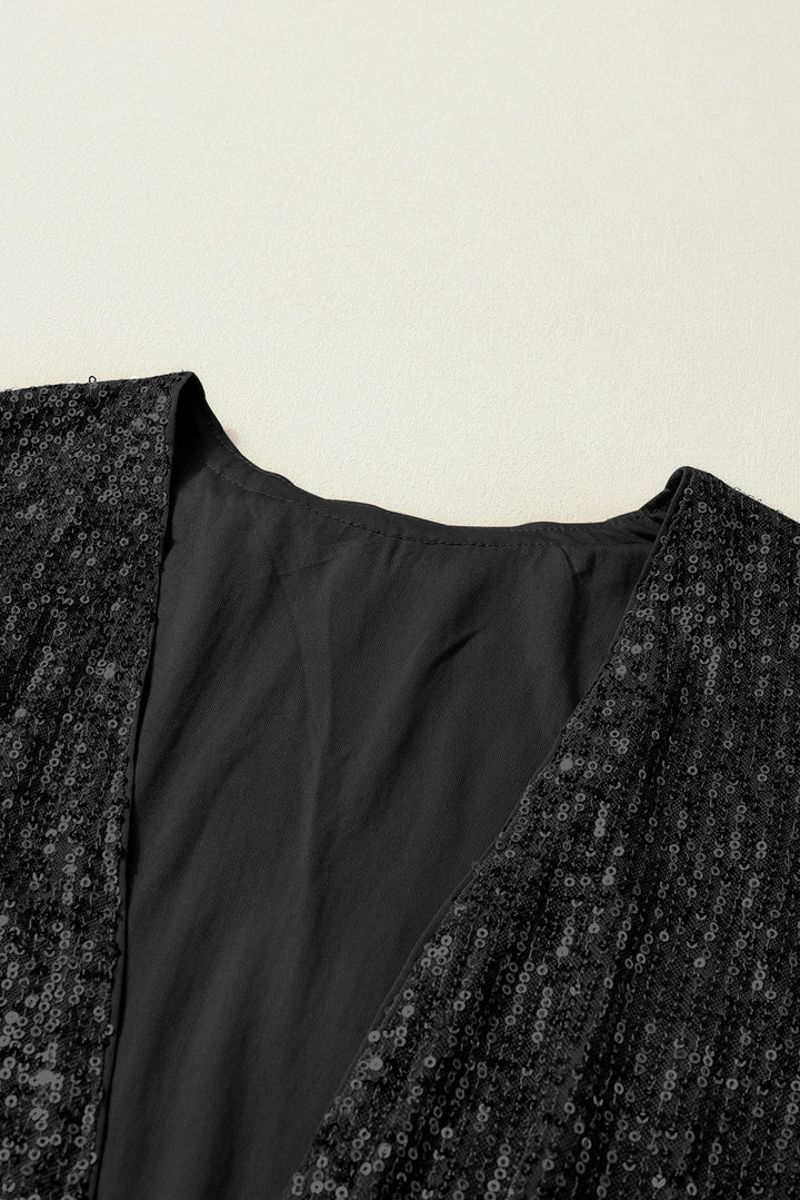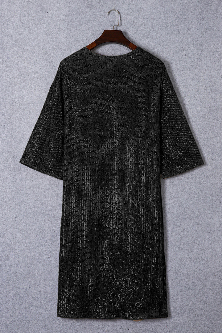 Sequin 3/4 Sleeve Open Front Duster Kimono