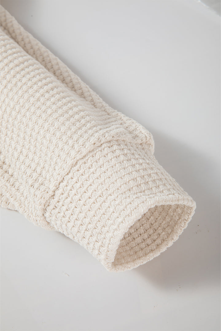 The waffle knit texture provides visual interest, ideal for casual outings.