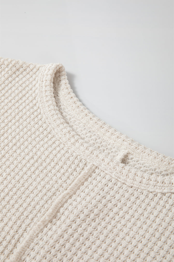 Waffle Knit Splits Batwing Sleeve Oversized Top