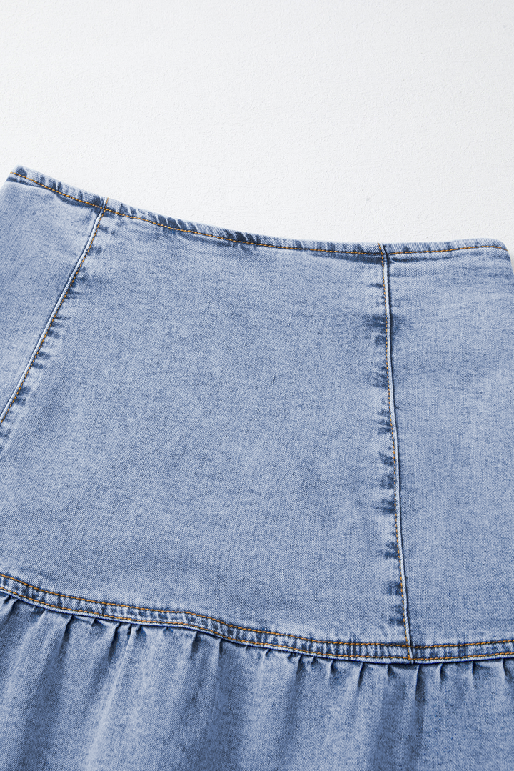 Beau Blue Asymmetric Ruffle Overlay Denim Mini Skirt