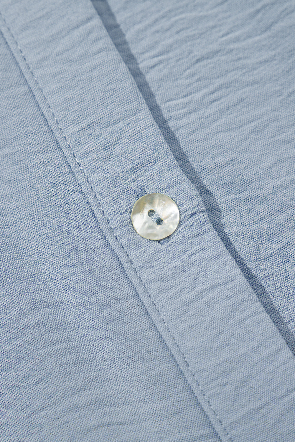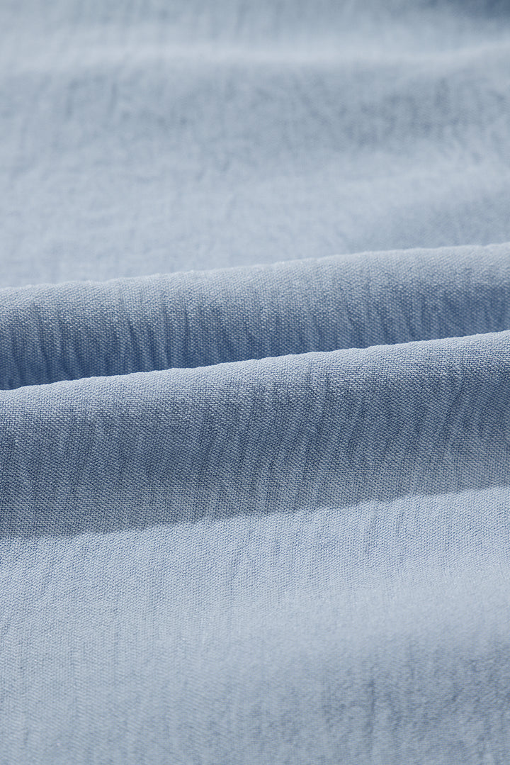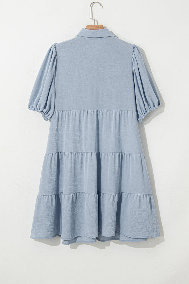 Beau Blue Shirt Collar Button Up Short Puff Sleeve Tiered Shift Dress