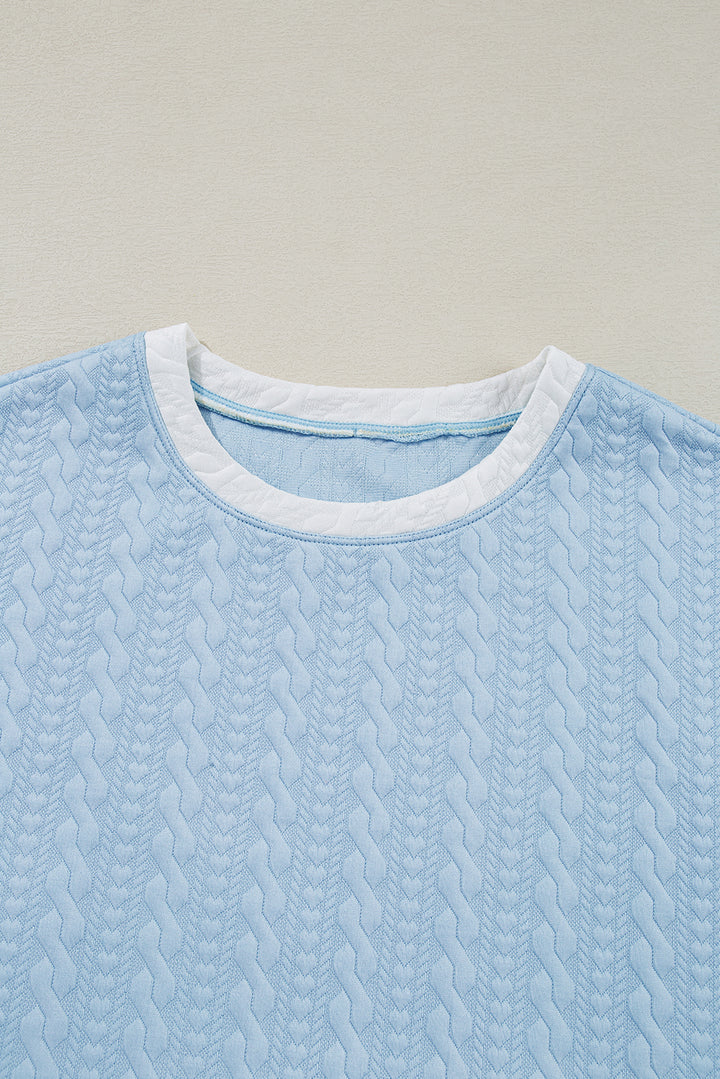 Beau Blue Textured Colorblock Edge Tank Top High Waist Pants Set
