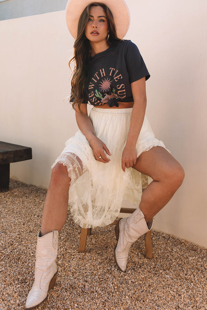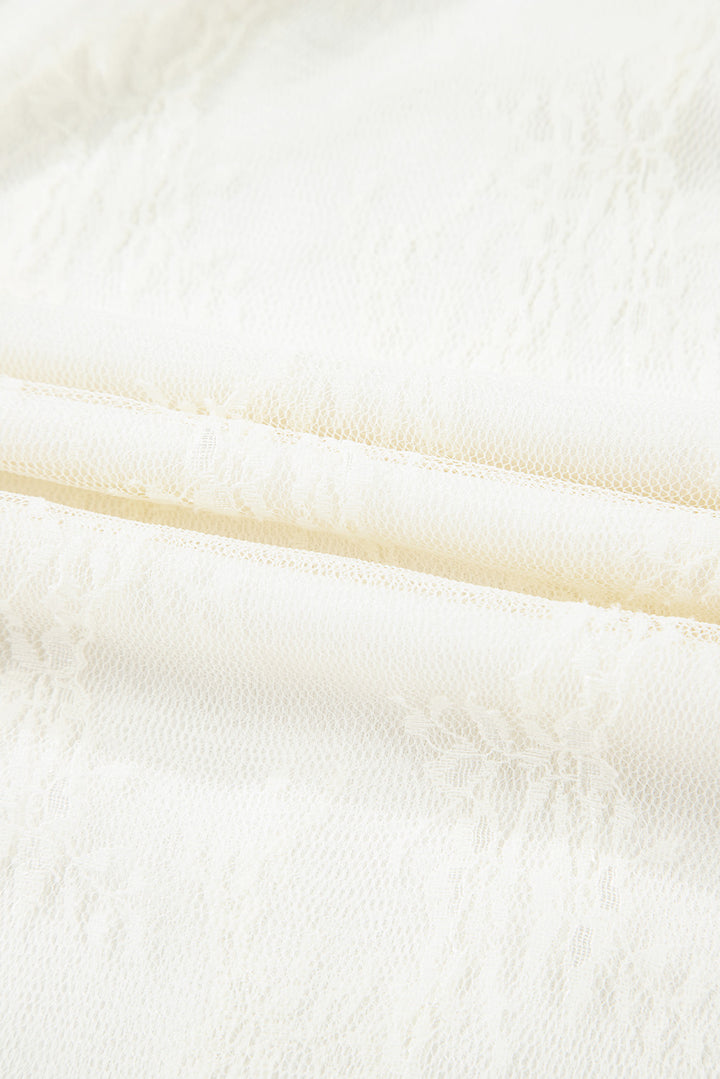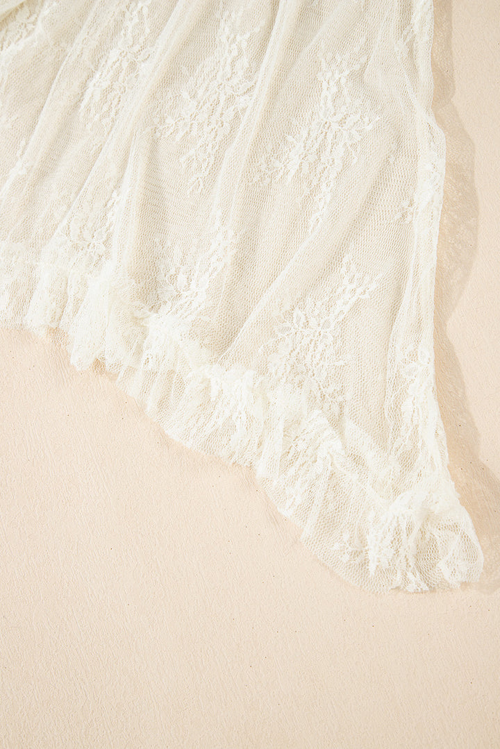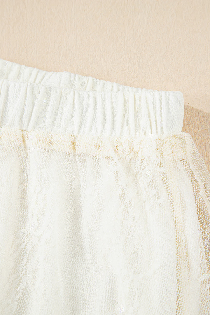 Beige Lace Cascading Tiered High Waist Maxi Skirt