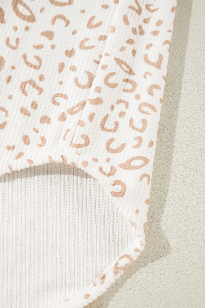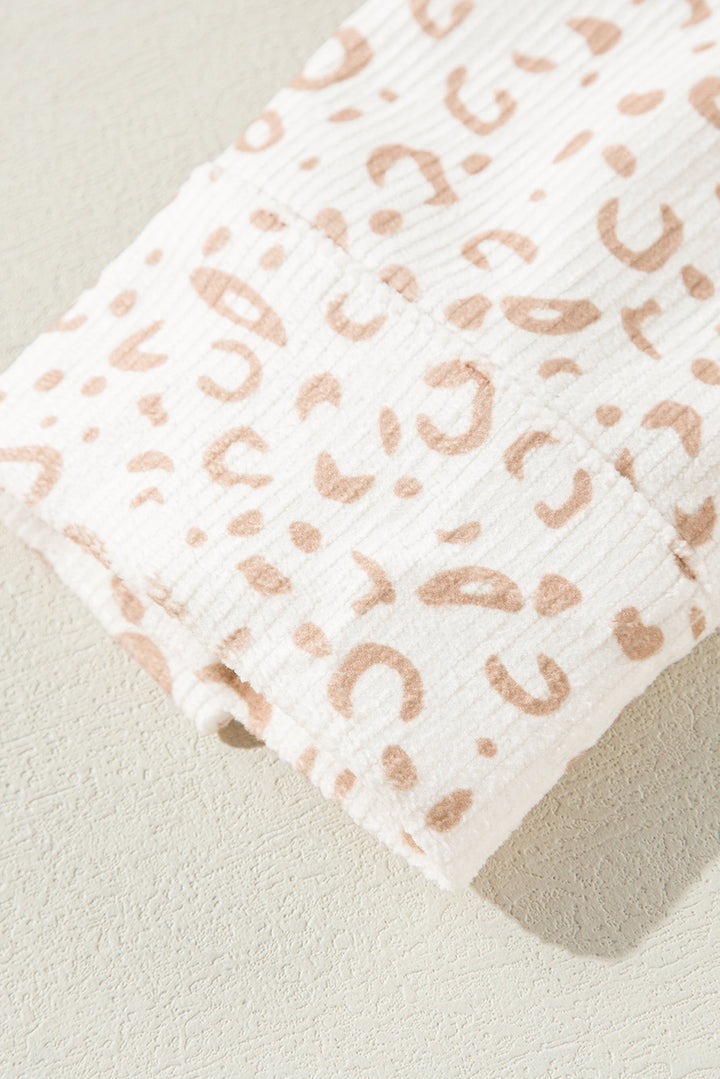 Leopard Print Flap Pockets Buttoned Corduroy Shacket