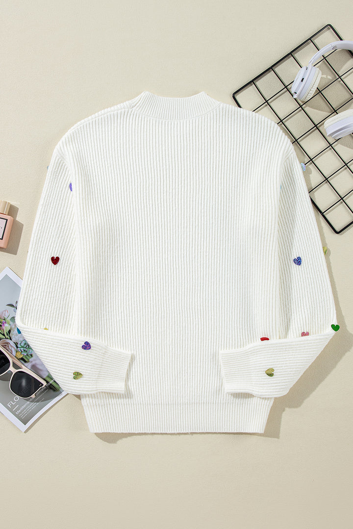 - This knit sweater is sparkling with eye-catching sequined heart pattern