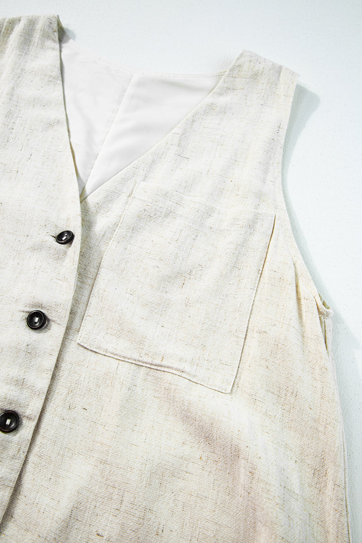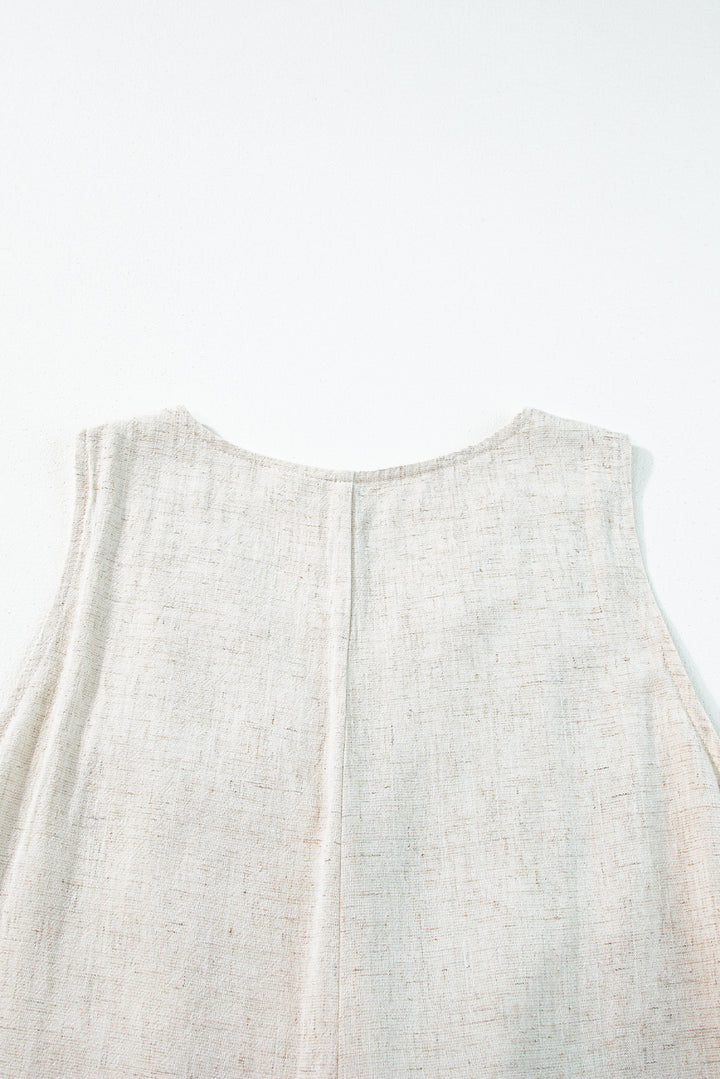 Sleeveless V Neck Buttoned Front Chest Pocket Romper