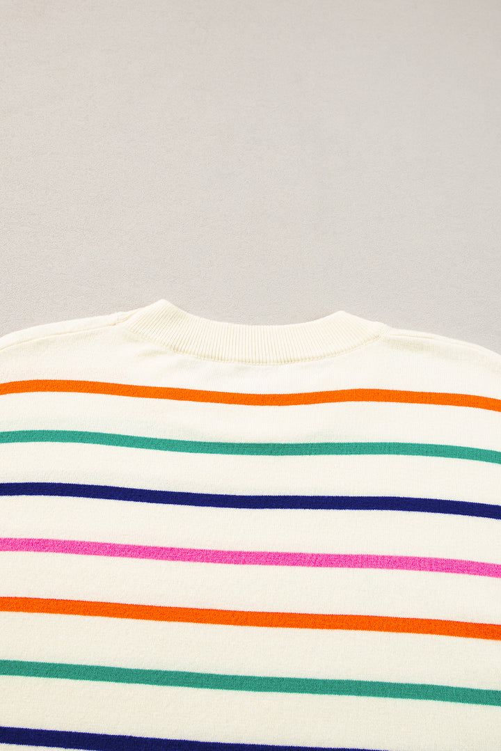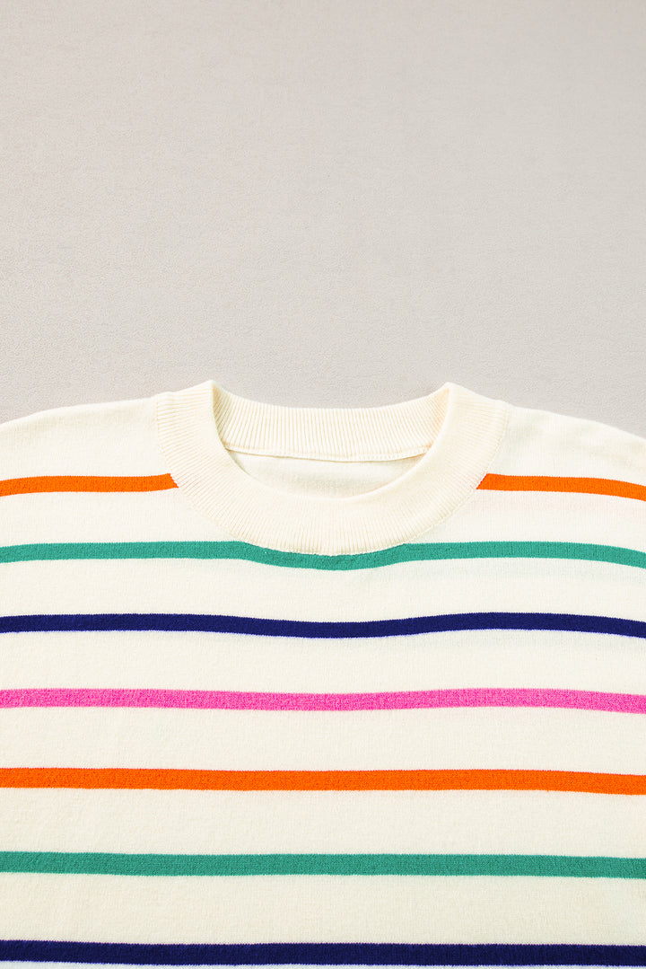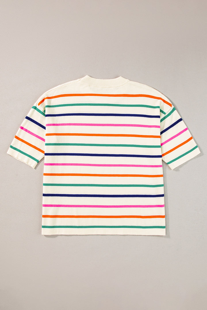 Stripe Dropped Short Sleeve Boxy Fit Knitted Top