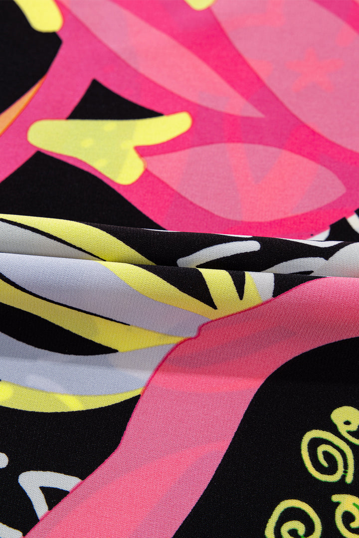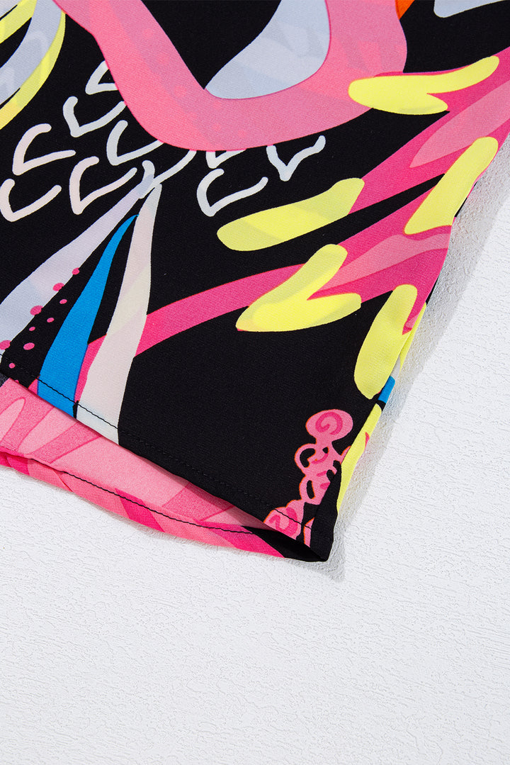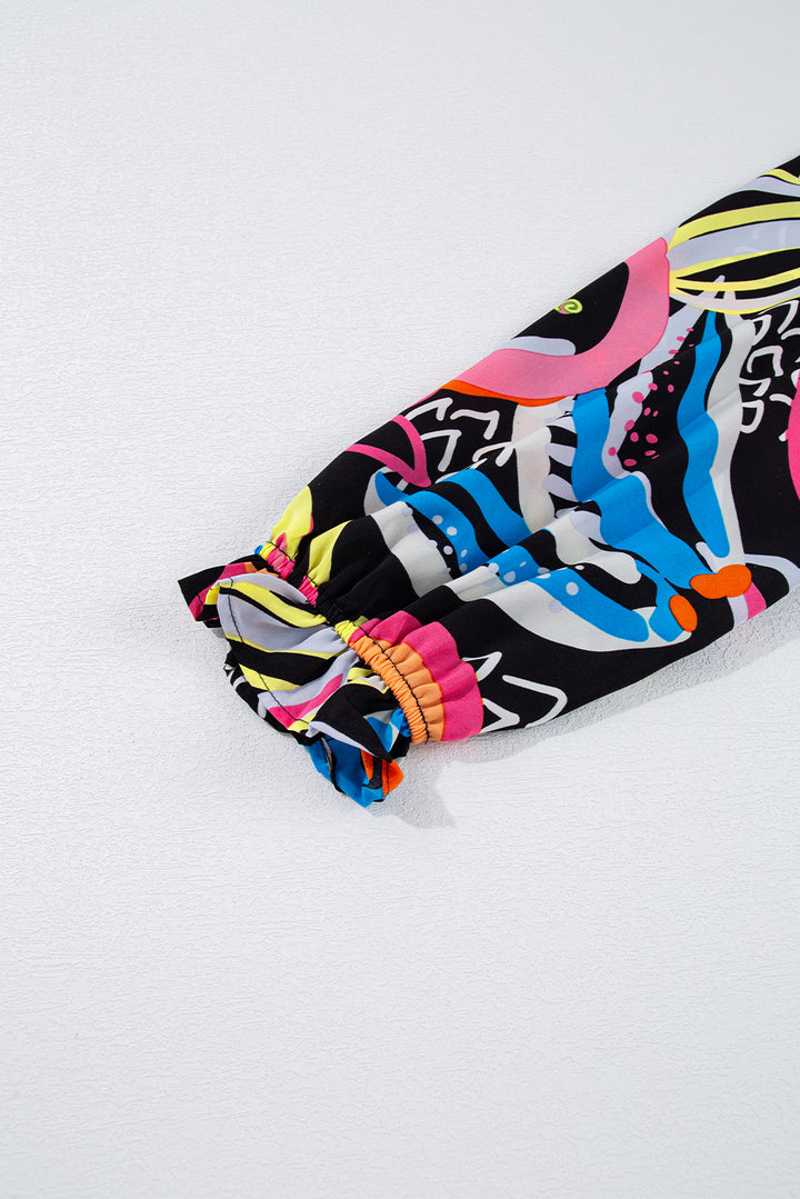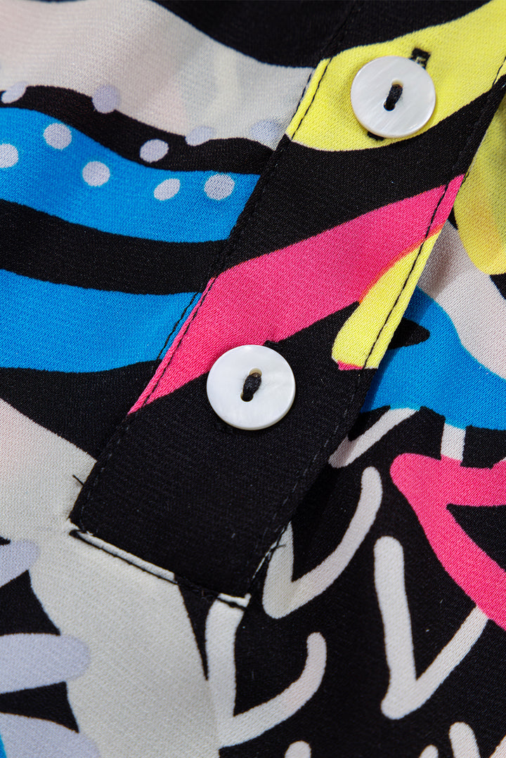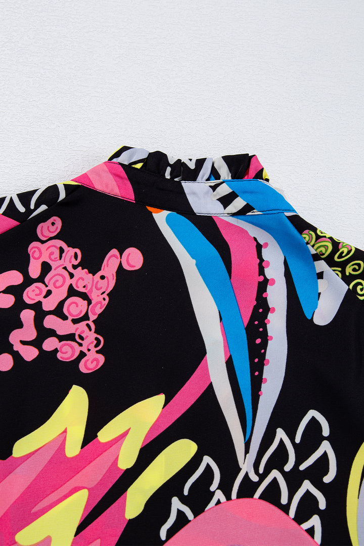 Abstract Print Ruffled Sleeve Buttoned V Neck Blouse