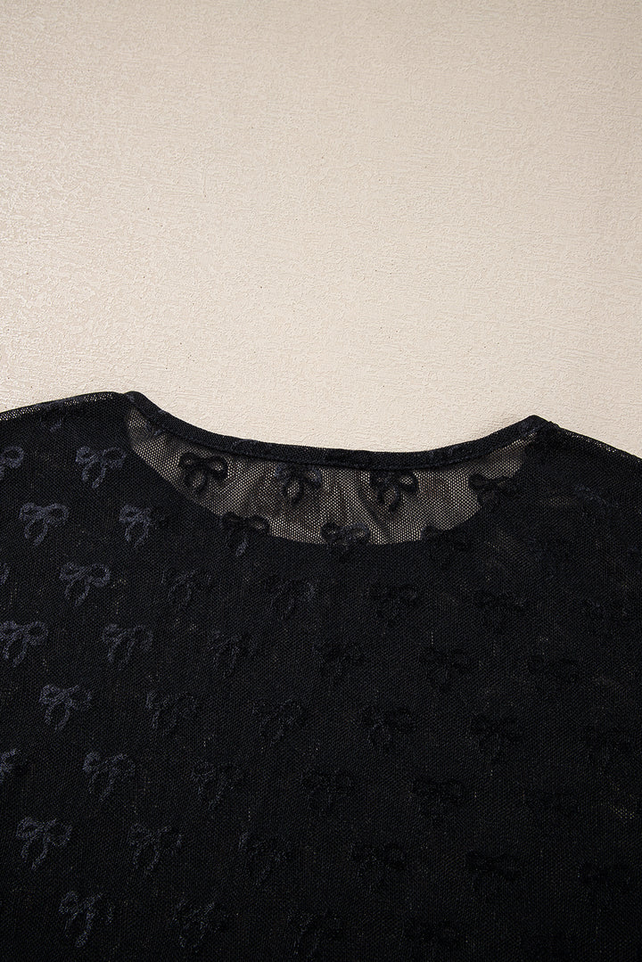 Black Mesh Bow Pattern Long Sleeve Top
