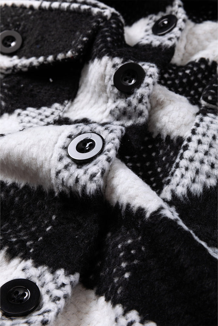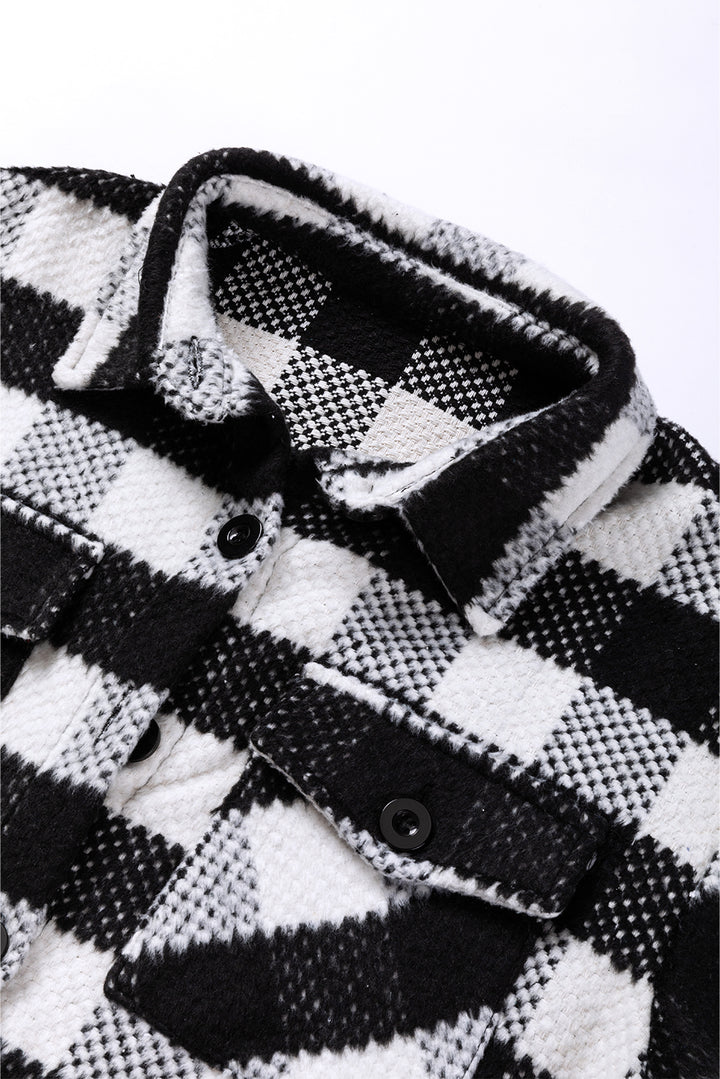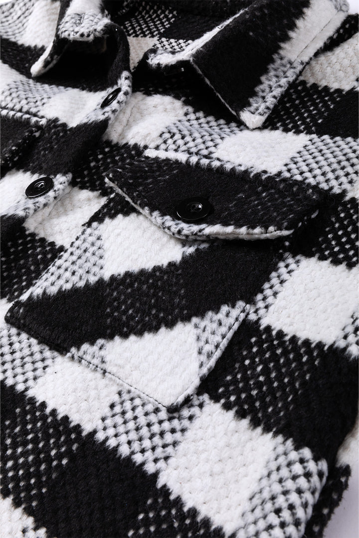 Plaid Textured Flap Pocket Shacket