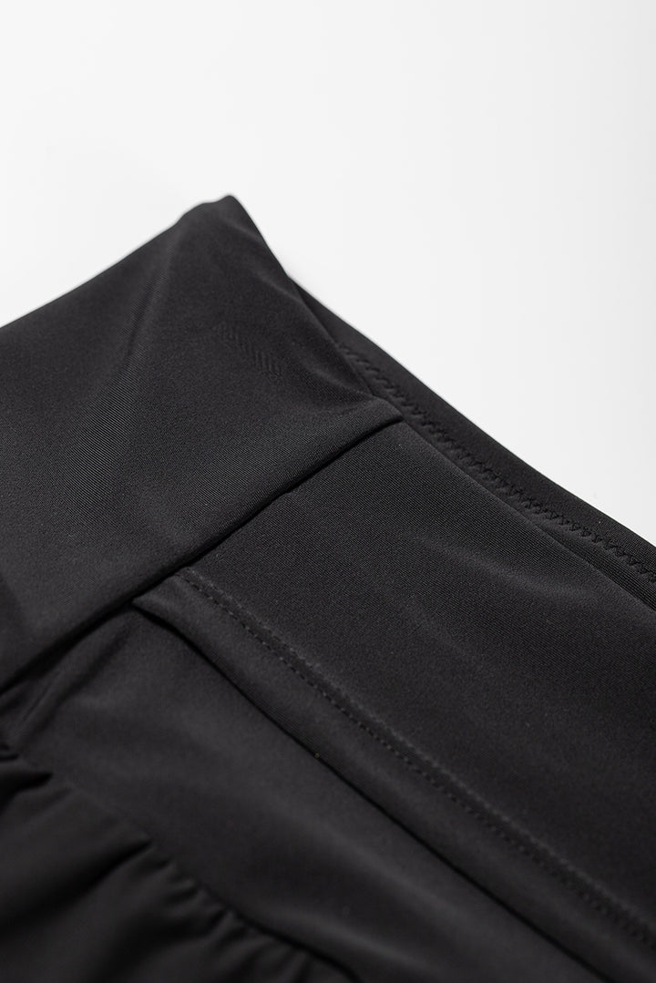 The solid color swim shorts add a sleek and versatile element to your swimwear