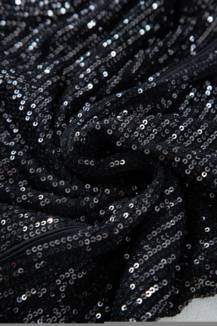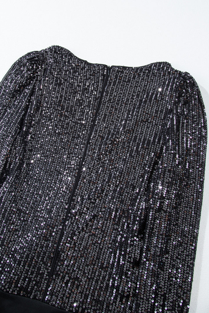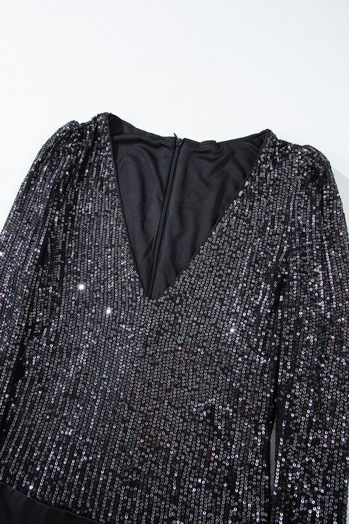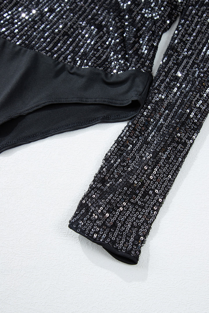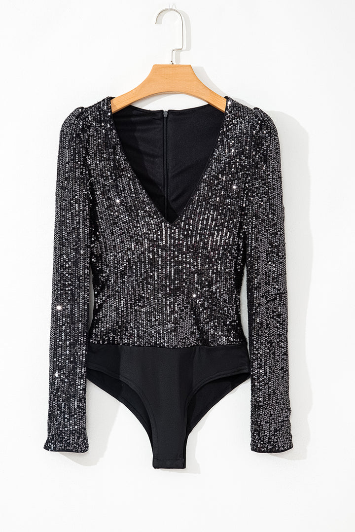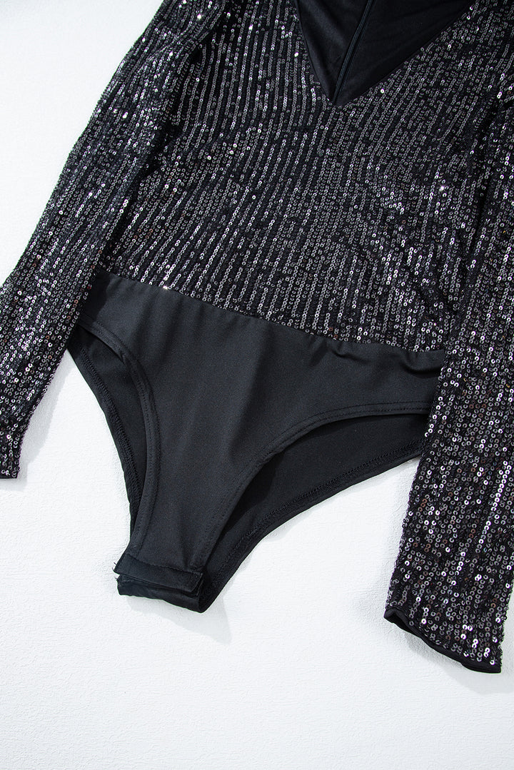 Sequin V Neck Zipped Long Sleeve Bodysuit