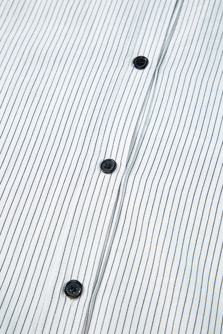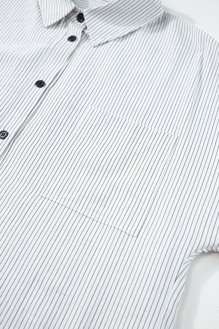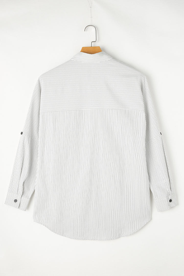 Stripe Roll-tab Sleeve Pocketed Long Shirt