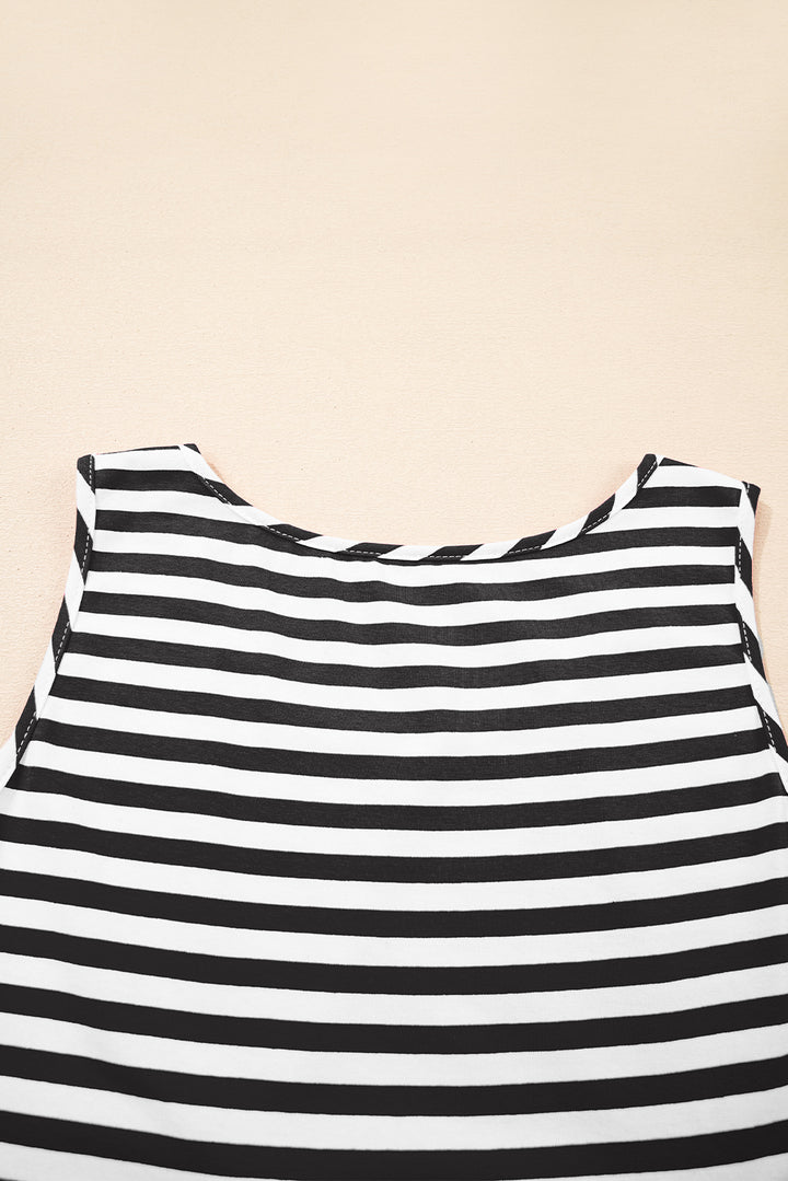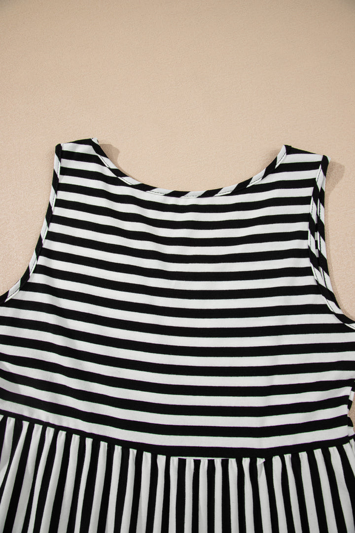Black Stripe U Neck Sleeveless Loose Fit Mini Dress