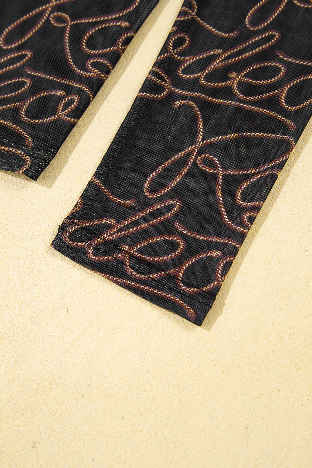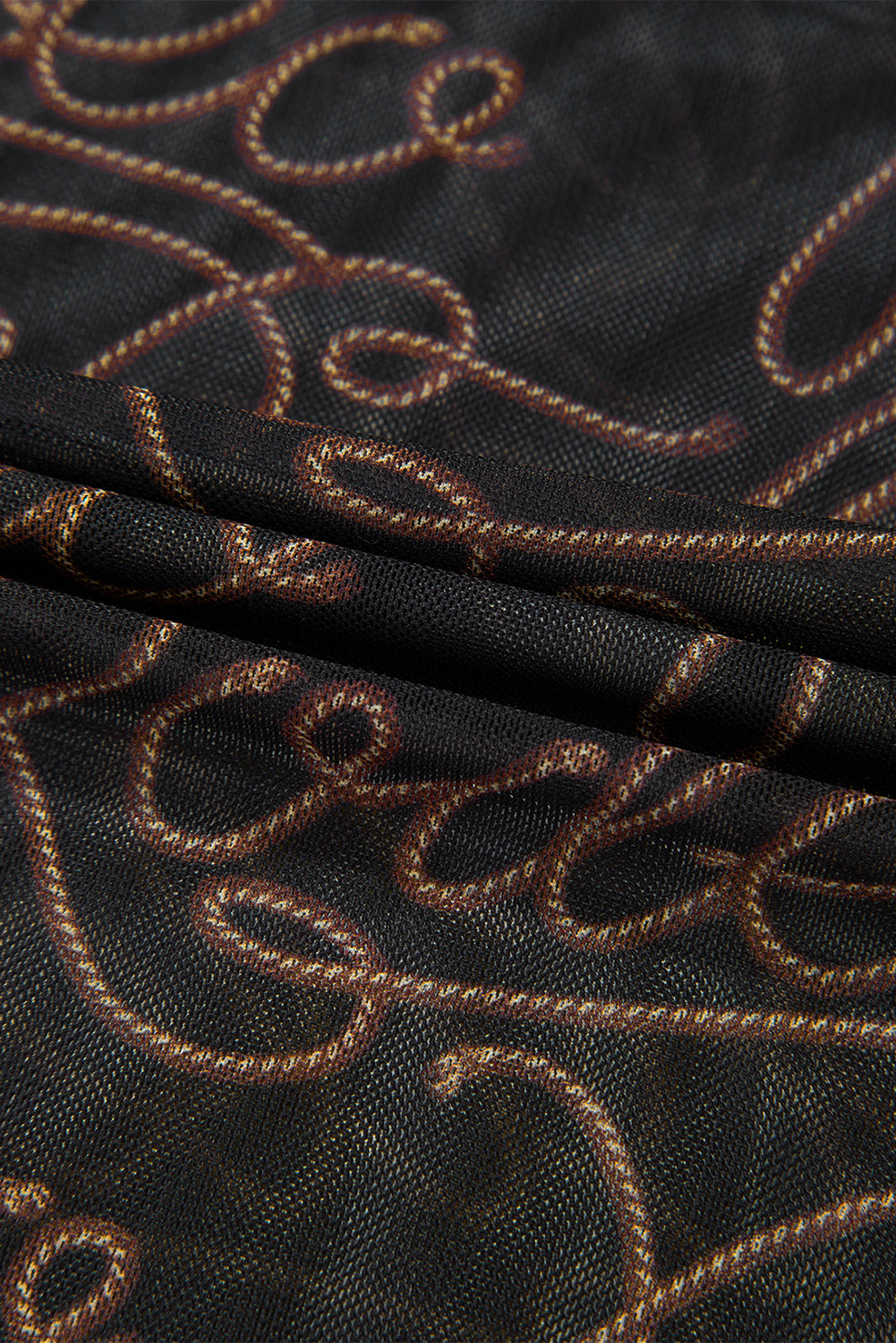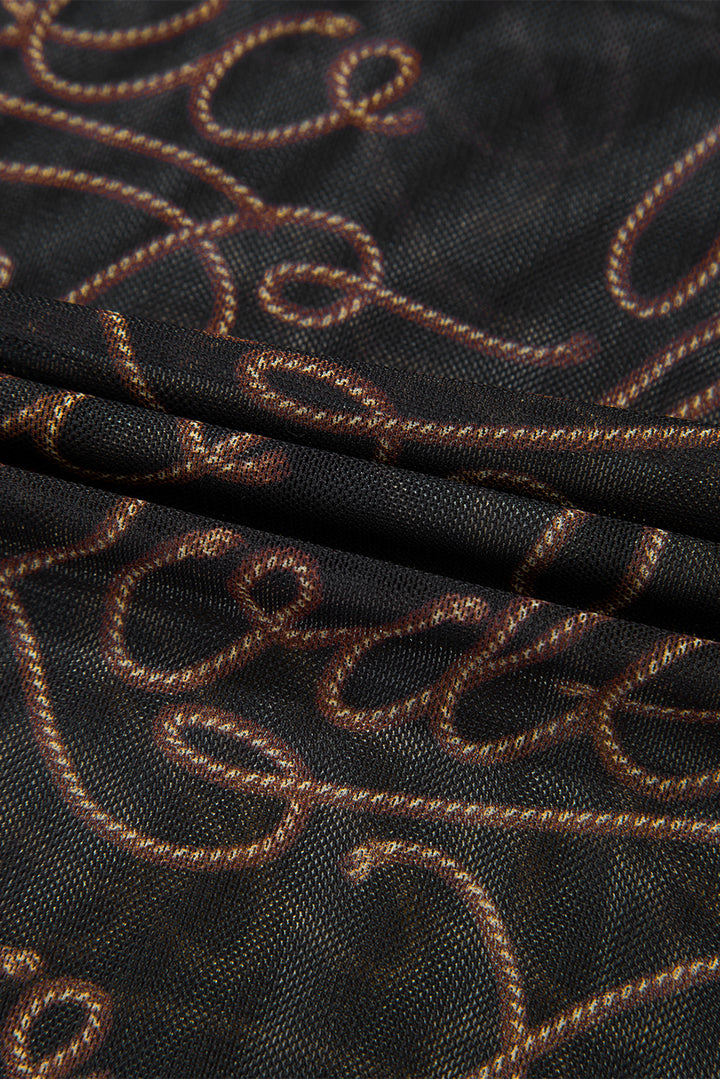 Black Western Rodeo Printed Mock Neck Long Sleeve Mesh Top