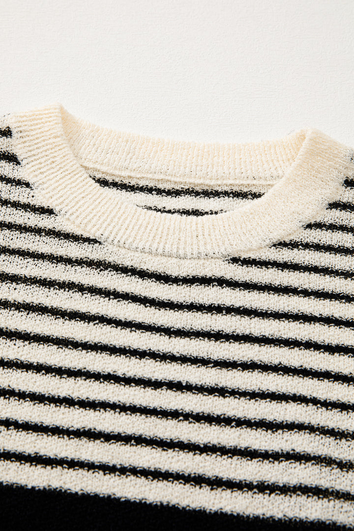 Black white Striped O Neck Sweater Vest