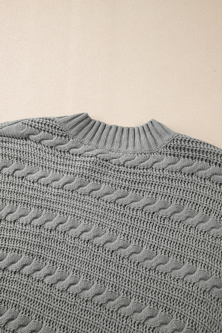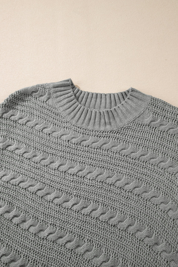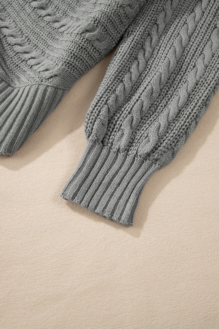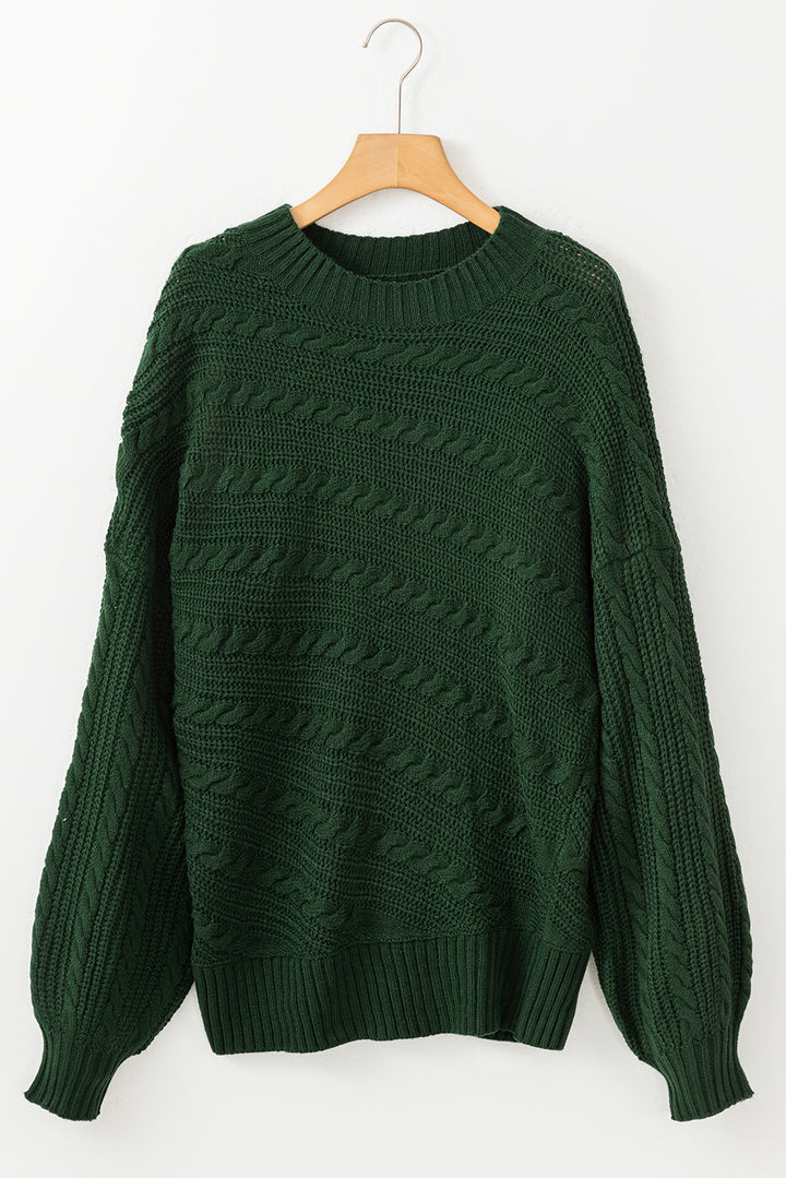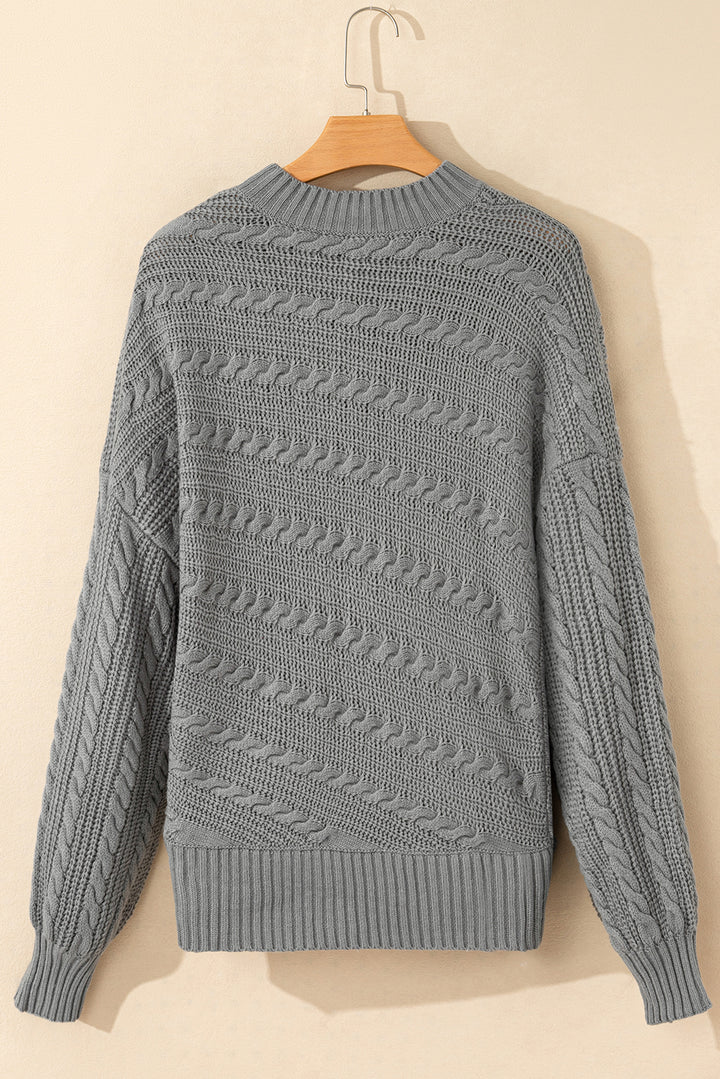 Mock Neck Lantern Sleeve Cable Knit Sweater