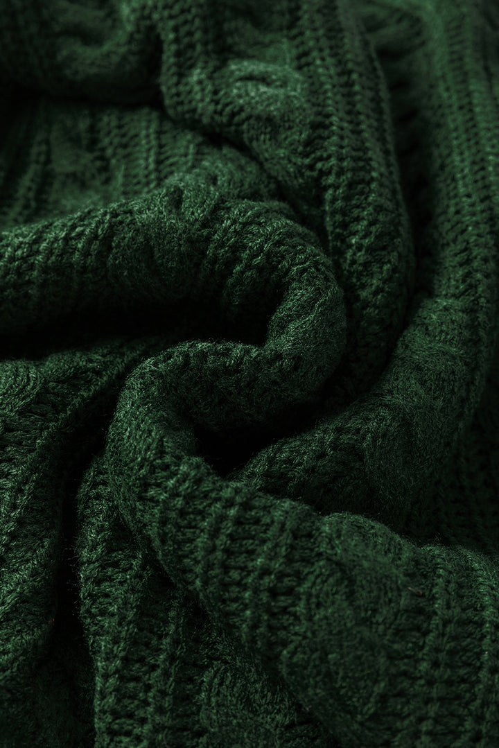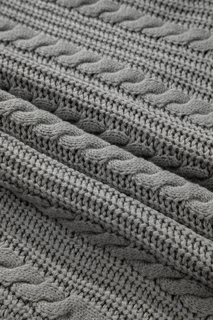 - Cable knitting with ribbed trim gives a sophisticated feel
