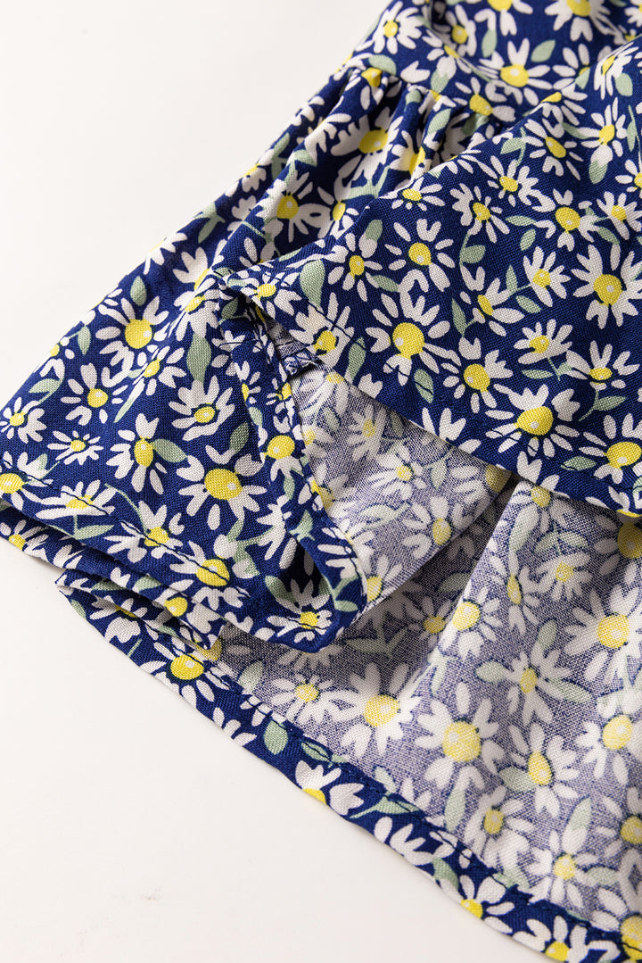 Blue Boho Floral Print Smocked Square Neck Loose Fit Blouse