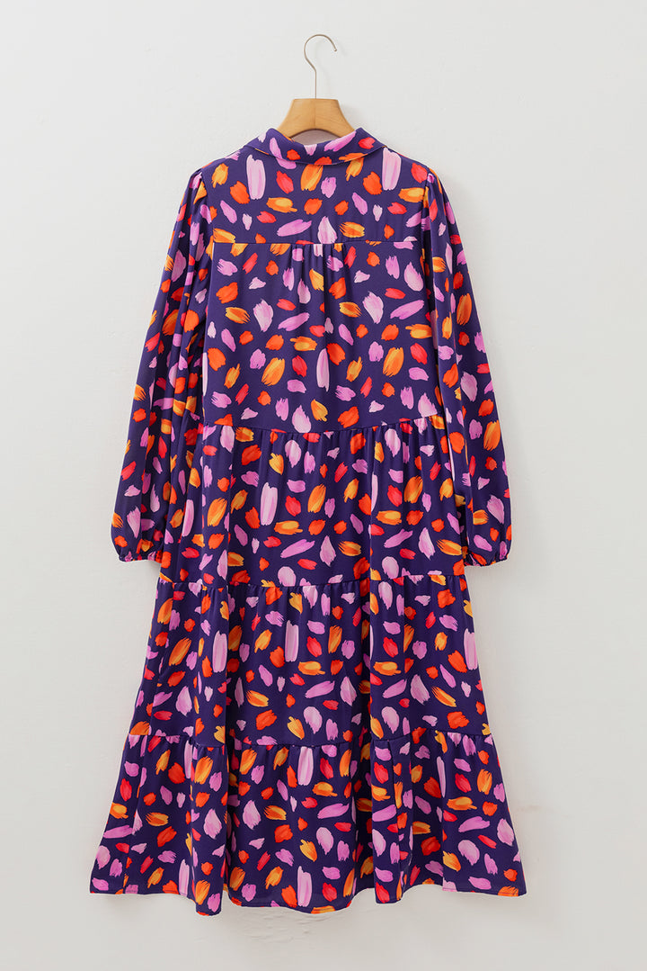 - A collar designed frames the neck and gives an elegant look to this long dress.