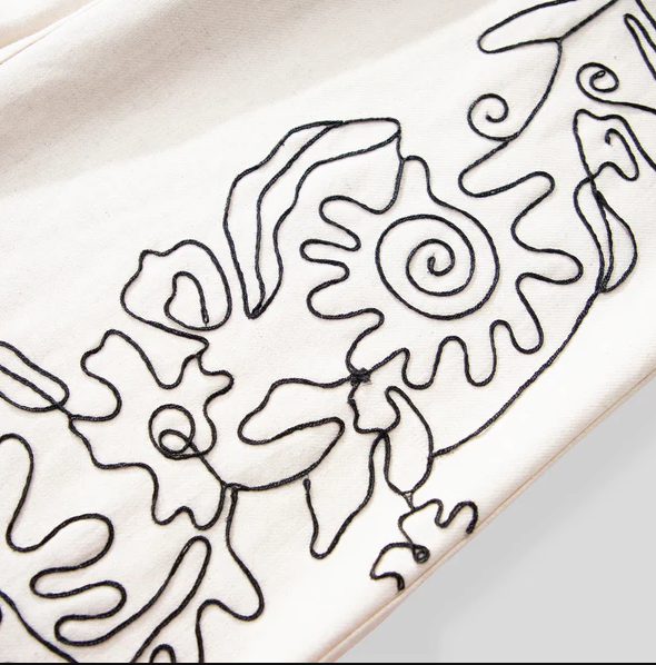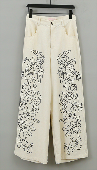 Embrace effortless bohemian flair with our embroidered straight-leg trousers. The relaxed fit and flowing lines move with you, while the exquisite handcrafted embroidery tells a story of artistry and adventure. Perfect for elevating your everyday style with a whisper of wanderlust, these pants pair beautifully with everything from simple tees to elegant blouses.