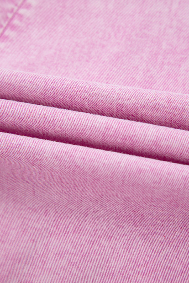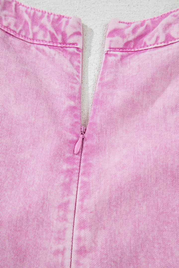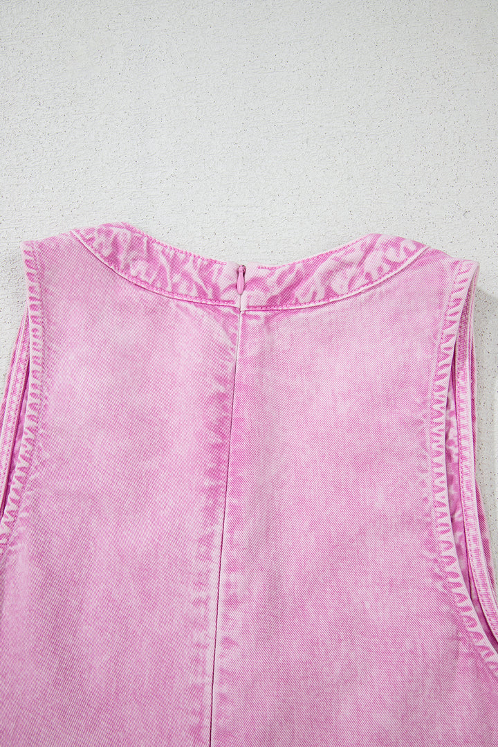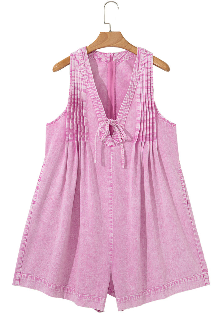 Bonbon Mineral Wash Pleated Bust V Neck Sleeveless Denim Romper