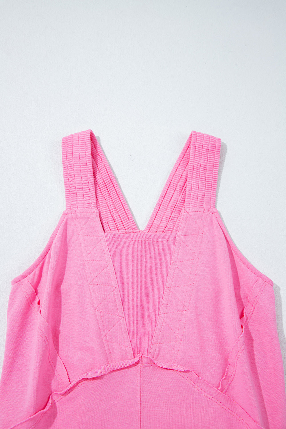 Bonbon Mineral Wash Raw Seam Patchwork Wide Leg Loose Jumpsuit
