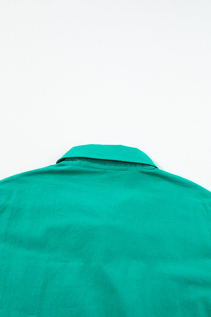 Bright Green Shirred Ruffle Sleeve Button Up Short Dress