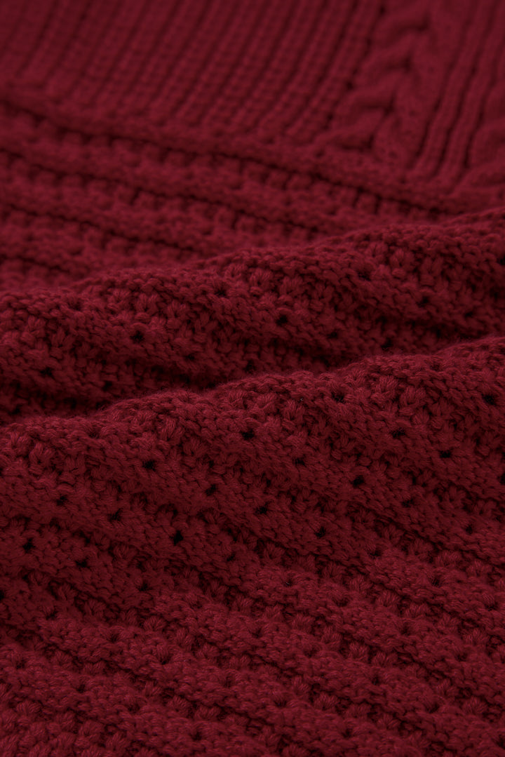 Burgundy Cable Knit Pointelle Slim Fit V Neck Sweater Vest