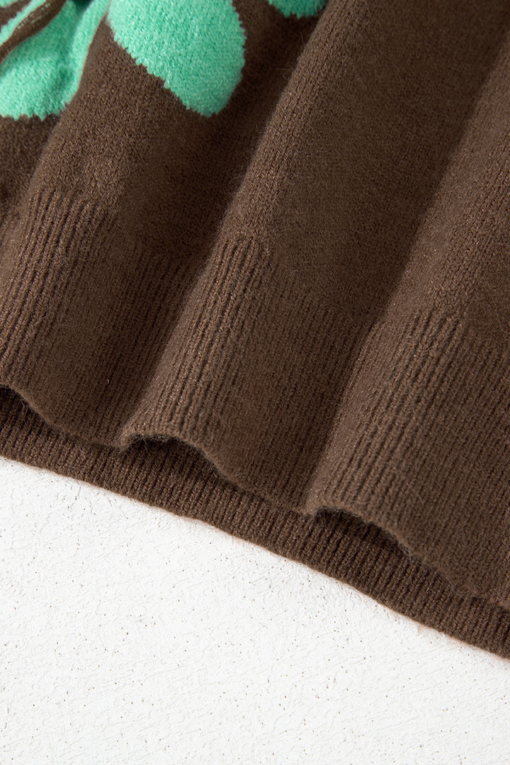 Big Flower Pattern V Neck Drop Shoulder Sweater