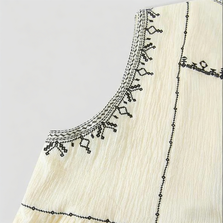 Elevate your casual style with this uniquely designed Color-block Embroidered Half-placket Tank Top. This top masterfully combines a modern, architectural color-block design with delicate artisanal embroidery and a versatile half-placket, creating a statement piece that is both stylish and sophisticated.