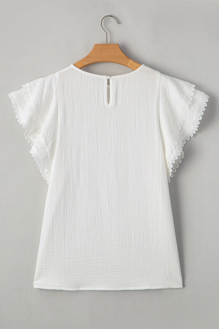 Increase quantity for Crinkled Layered Ruffled Flutter Sleeve Blouse