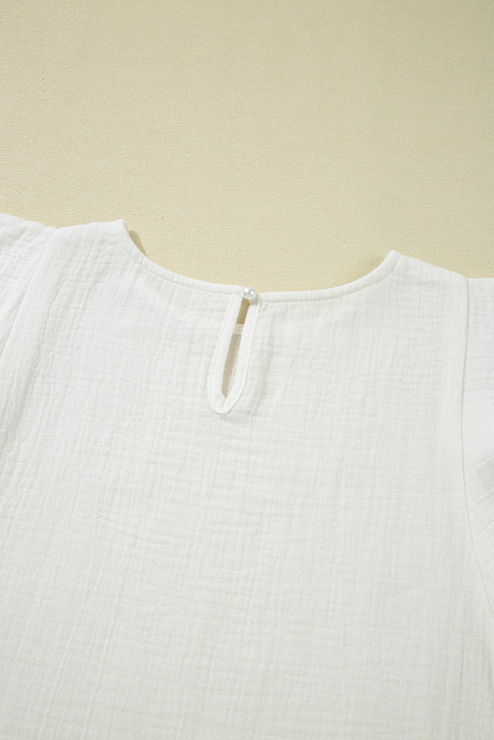 Crinkled Layered Ruffled Flutter Sleeve Blouse