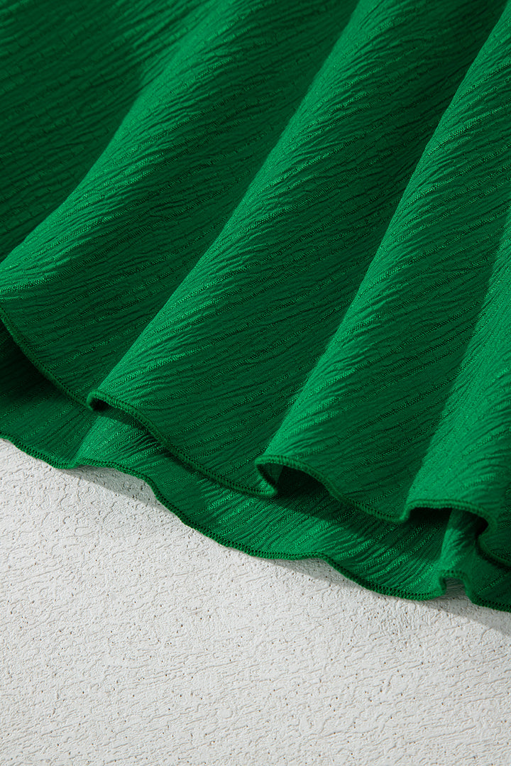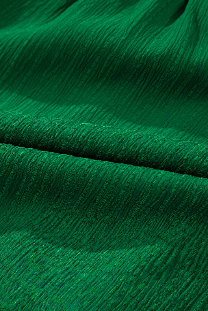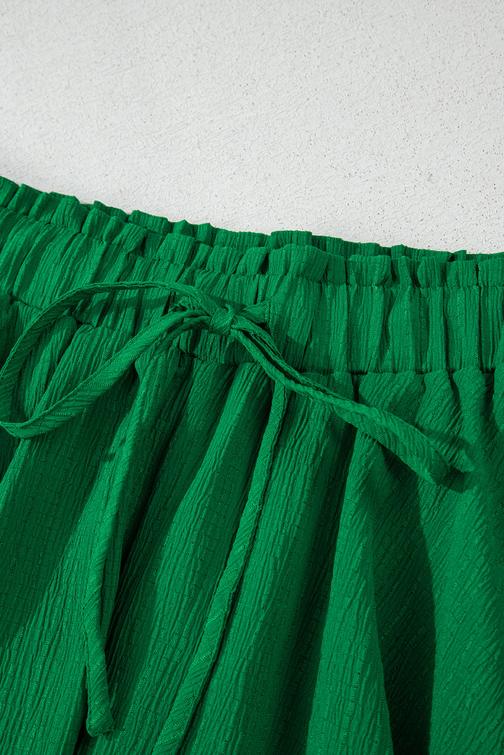 Dark Green Textured Frilled Lace-up High Waist Ruffle Wide Leg Shorts
