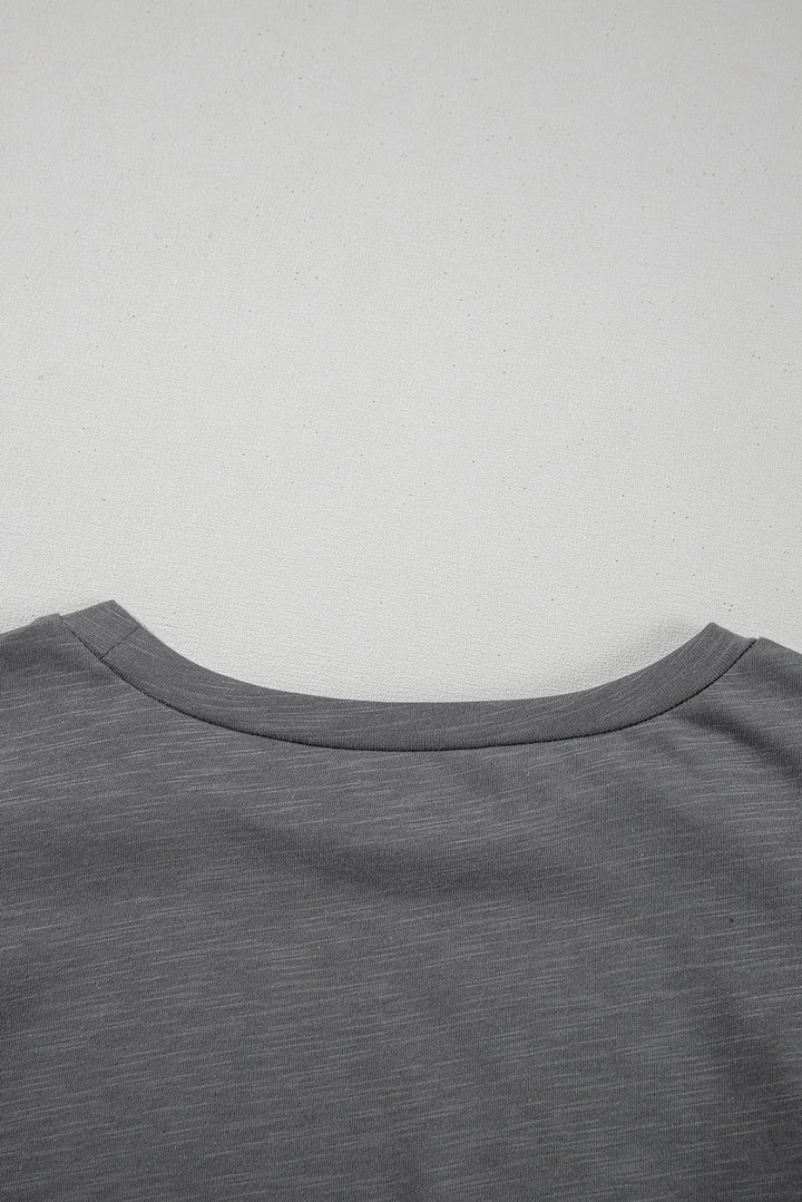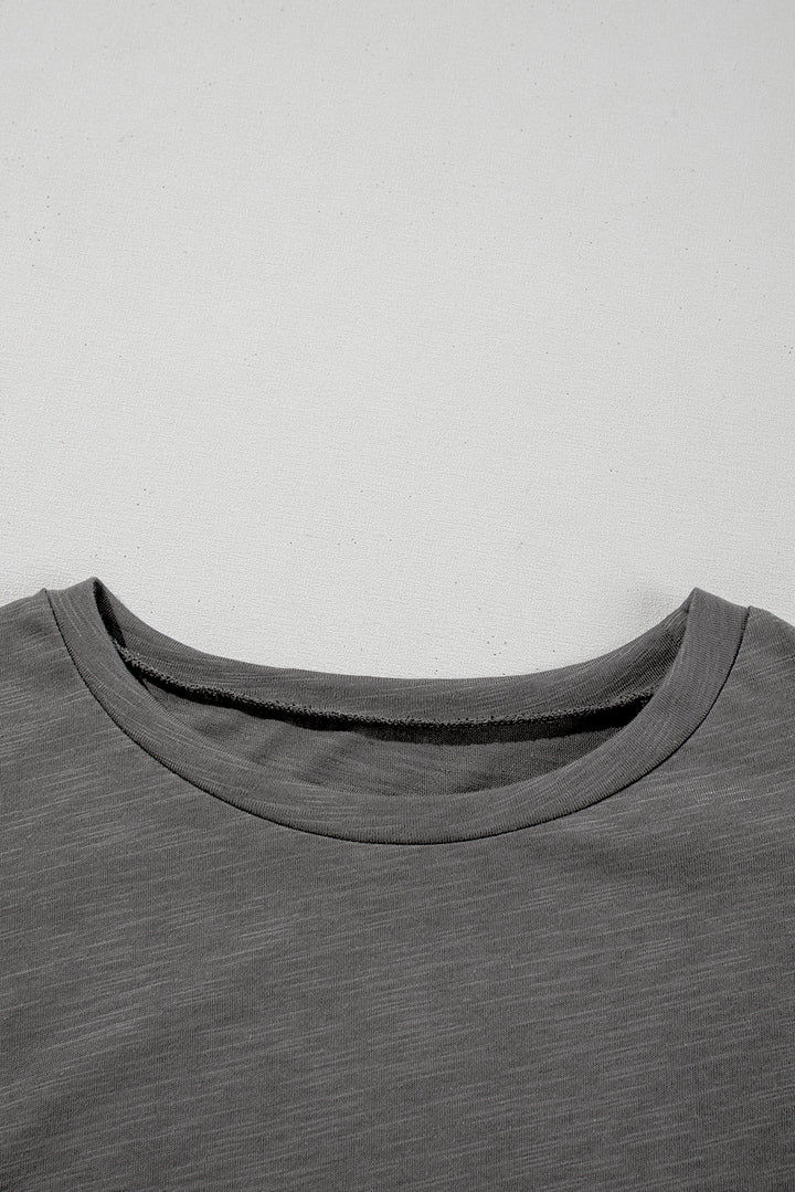 Dark Grey Layered Ruffle Short Sleeve Round Neck Top