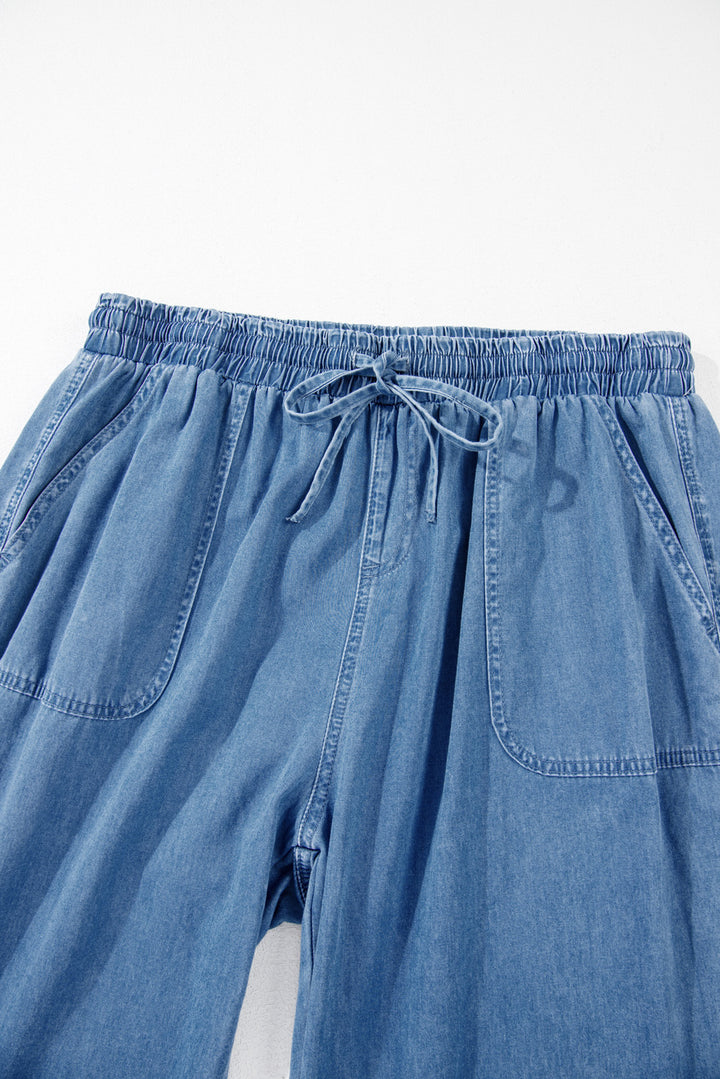 Drawstring Waist Pocketed Plus Size Denim Joggers