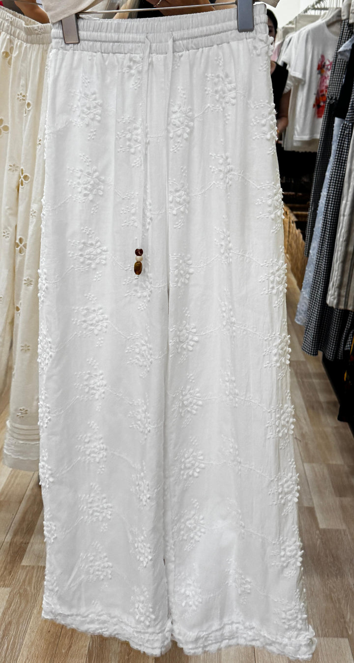 Floral 3D Print & Embroidery – These pants feature a floral design with a mix of printed and embroidered textures, adding depth and dimension.