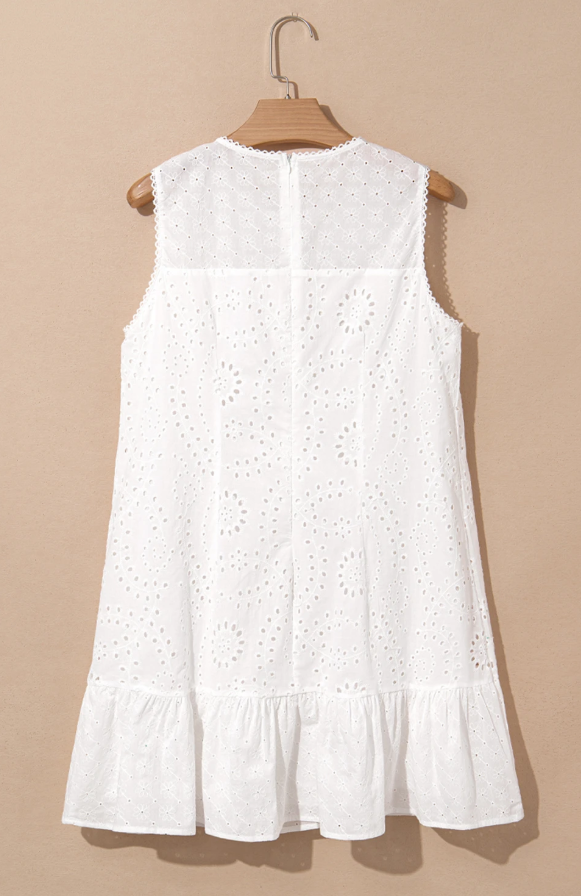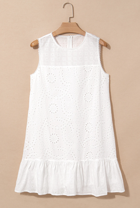 Floral Eyelet Embroidered Sleeveless Shift Dress