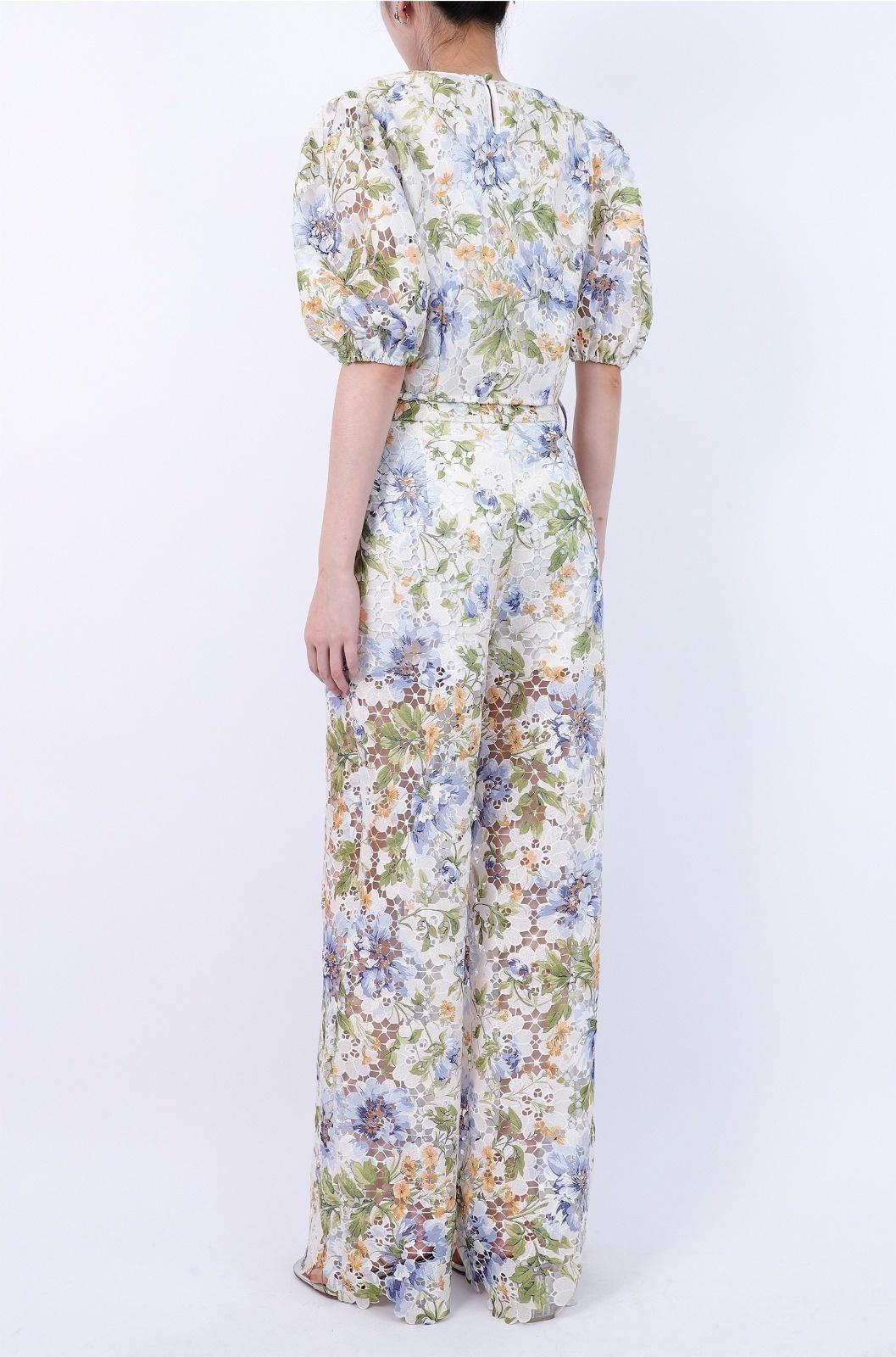 | Delicate Floral Eyelet Fabric: An all-over floral eyelet pattern, this intricate detailing creates a chic, airy look, offering a touch of romantic elegance to any outfit. Functional Side Pockets: These pants feature two discreet side-seam pockets, offering both convenience and a clean silhouette. Flattering Straight Leg Silhouette: The timeless straight-leg cut is designed to flatter every body type, creating a long, lean line that is both polished and effortlessly cool. |