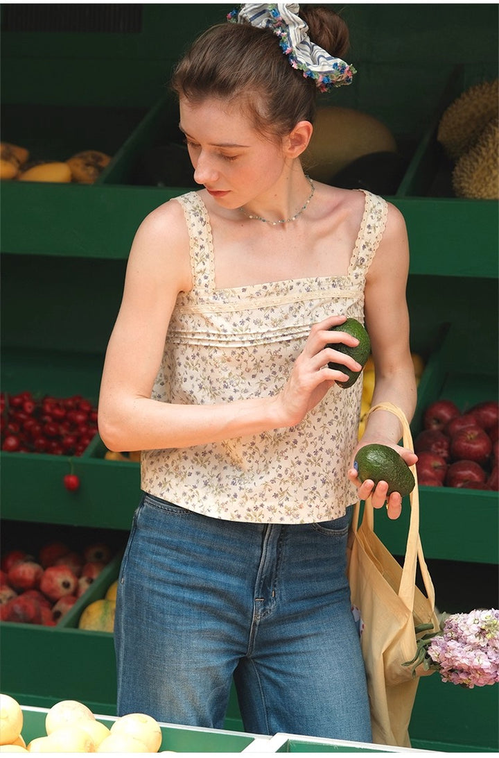 Floral Lace Trim Square Neck Sleeveless Crop Top