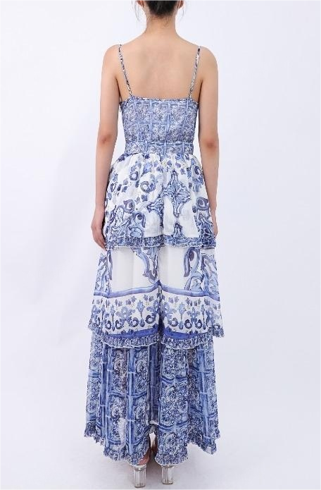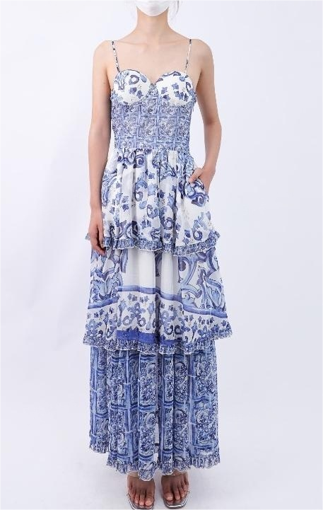 Floral Print Spaghetti Strap Tiered Maxi Dress
