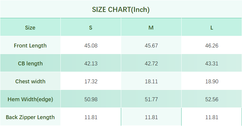 Convenient Back Zipper: A discreet back zipper allows for easy wear.