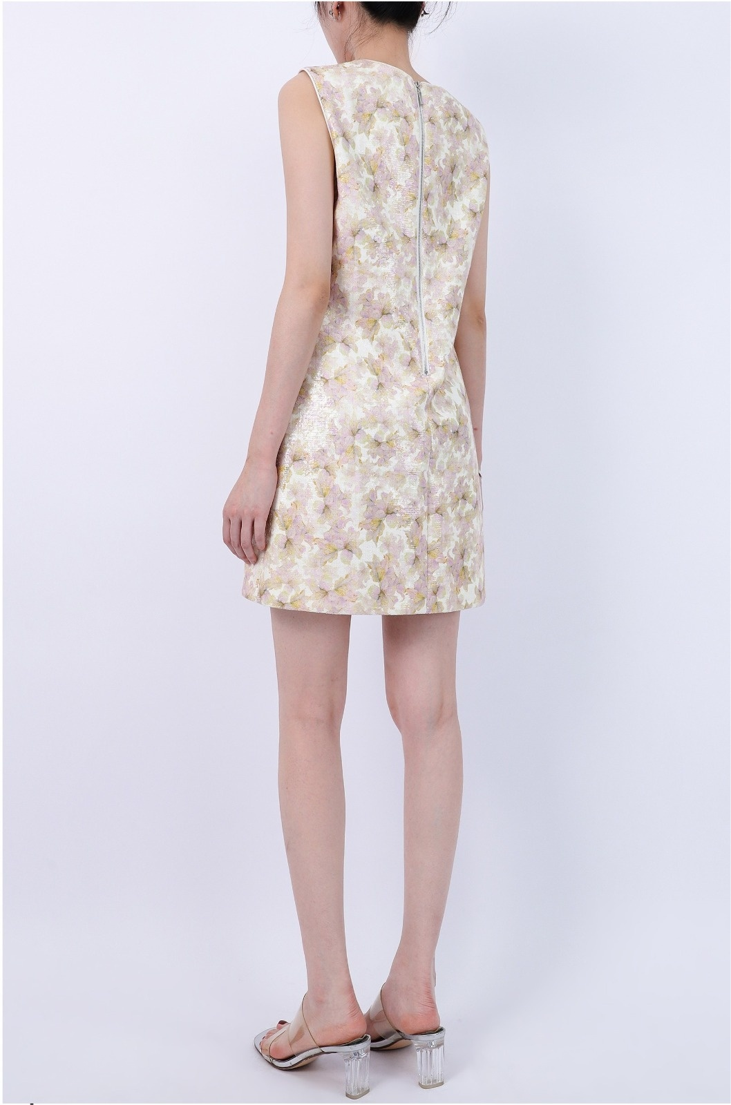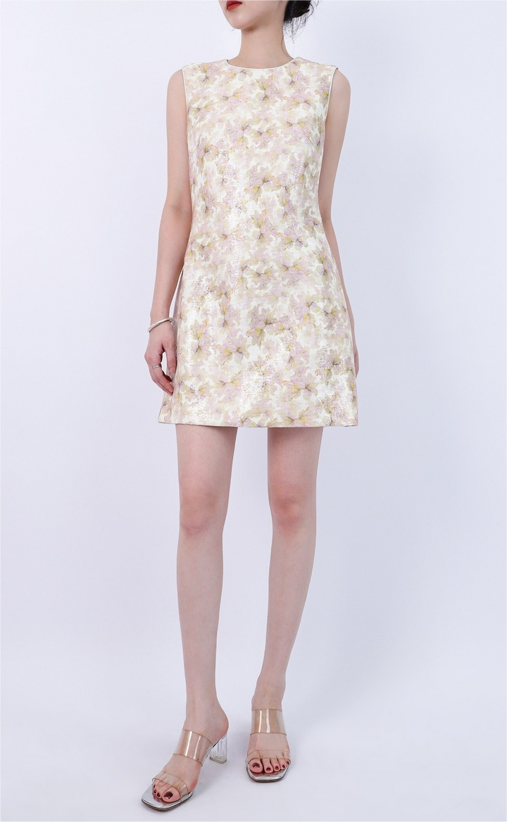 Floral Sequin Back Zipper Round Neck Shift Tank Mini Dress