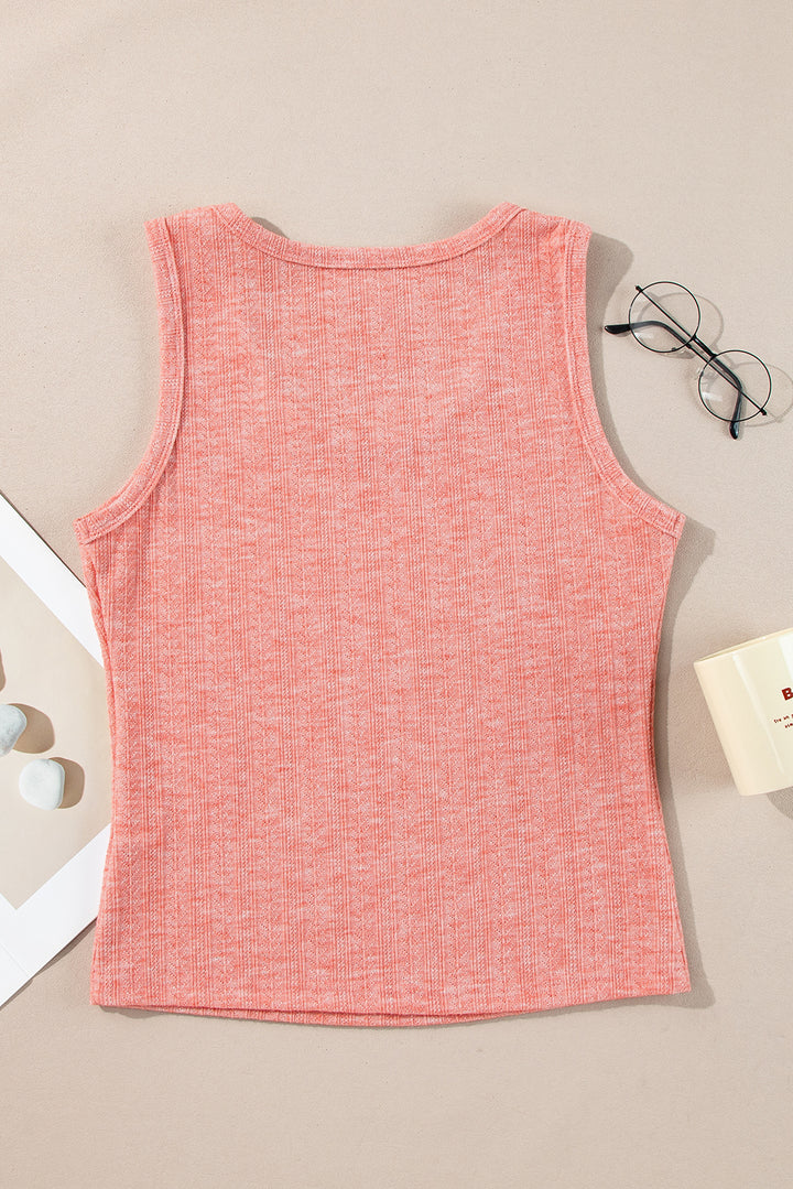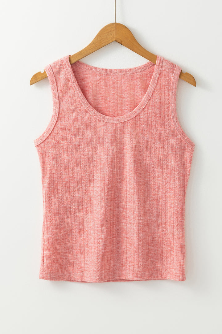Fushia Solid Color Textured U Neck Slim Tank Top