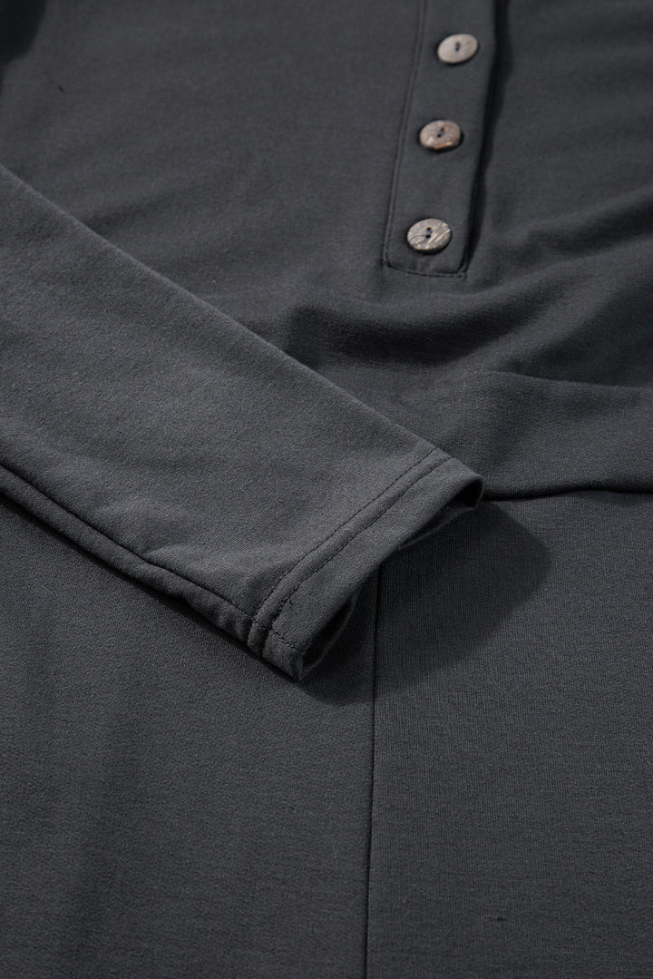 Button Long Sleeve Wide Leg Jumpsuit