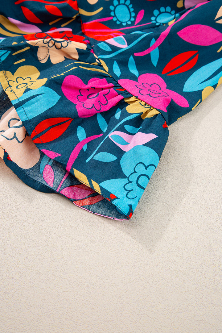 Floral Print Puff Sleeve Ruffled Mini Dress