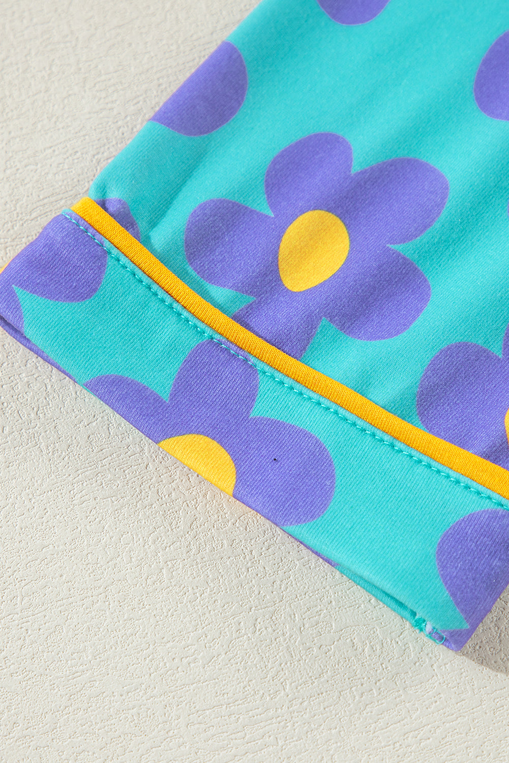 Green Flower Print Long Sleeve Shirt Shorts Pajamas Set