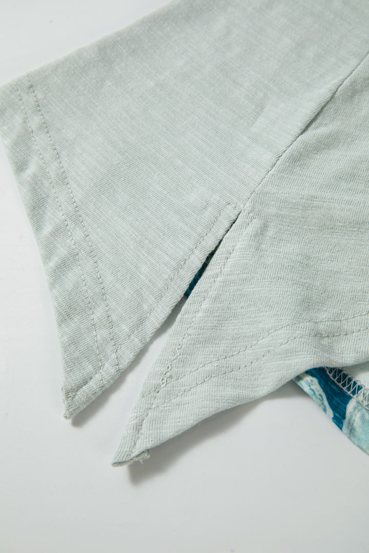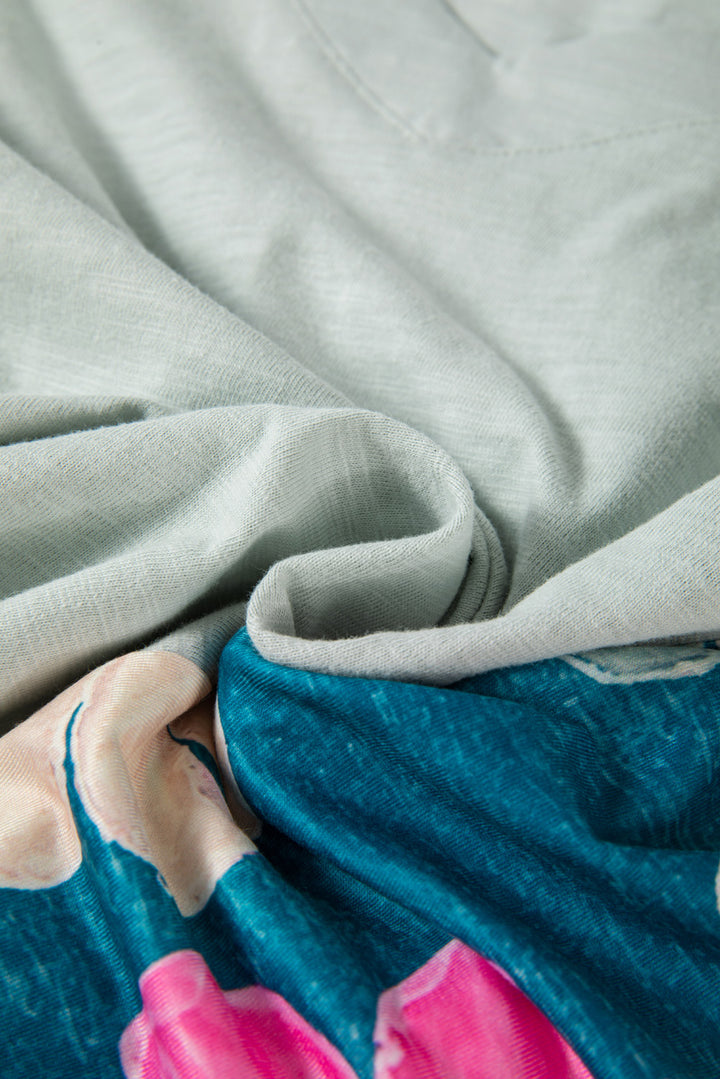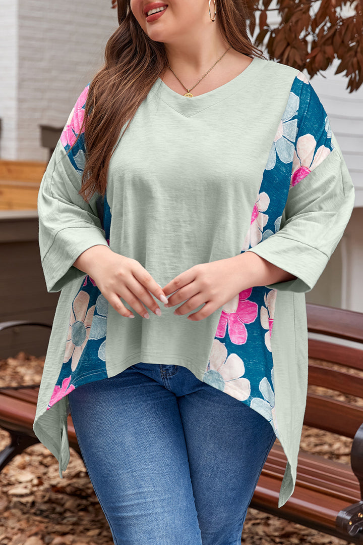 Plus Size Flower Patchwork Exposed Seam High Low Top