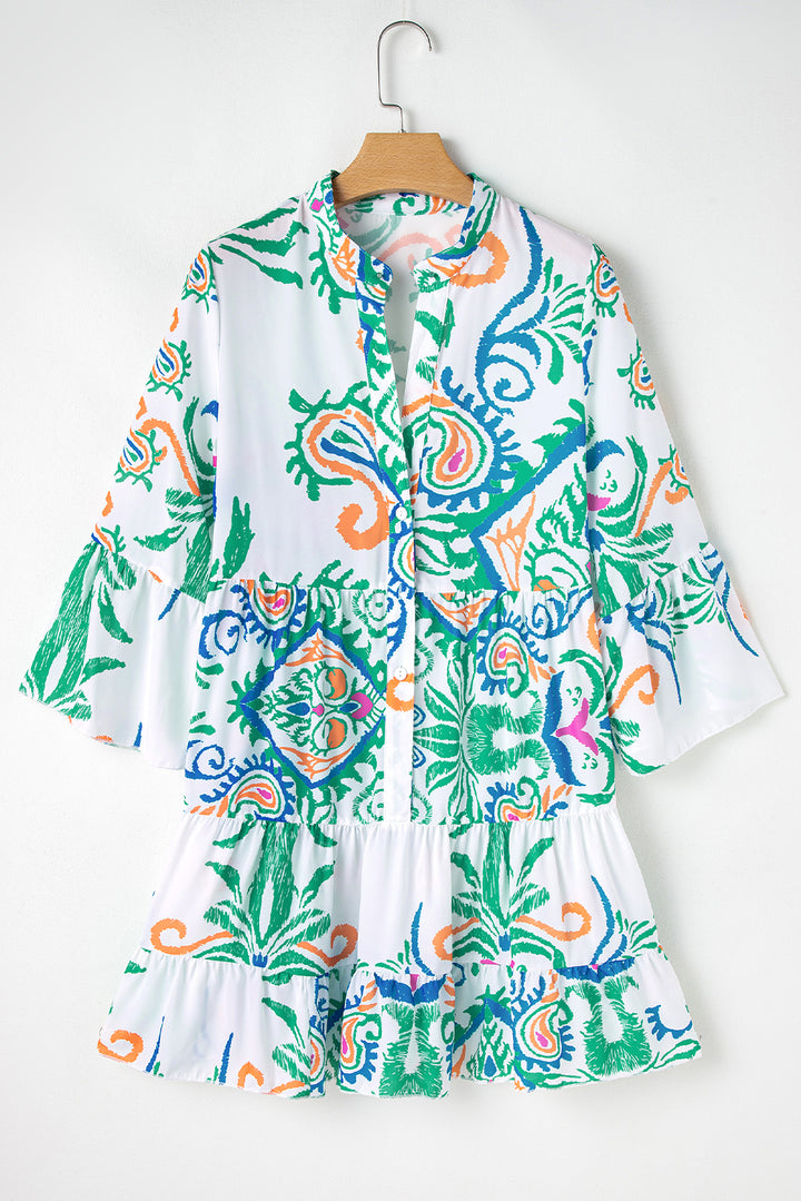 Green Tribal Bracelet Sleeve Buttoned Mini Dress