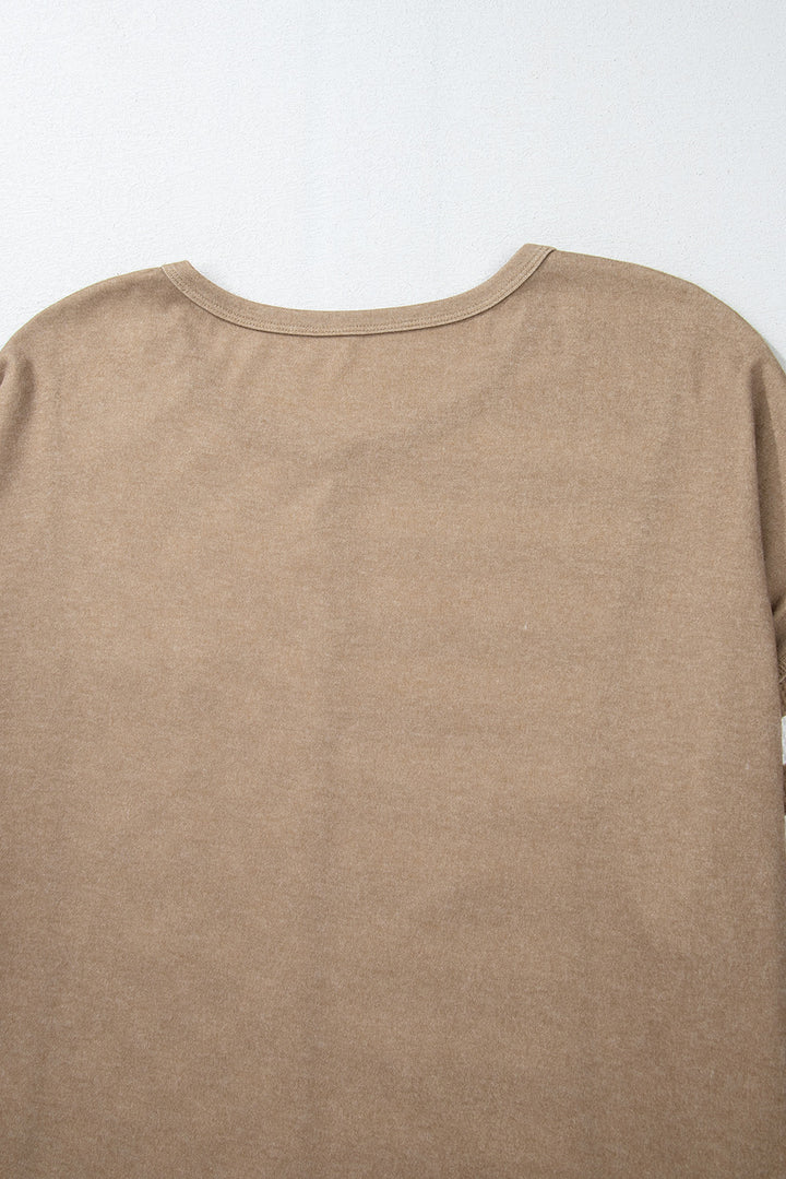 The high low hem and chest pocket add an edge look and detail to this loose top.